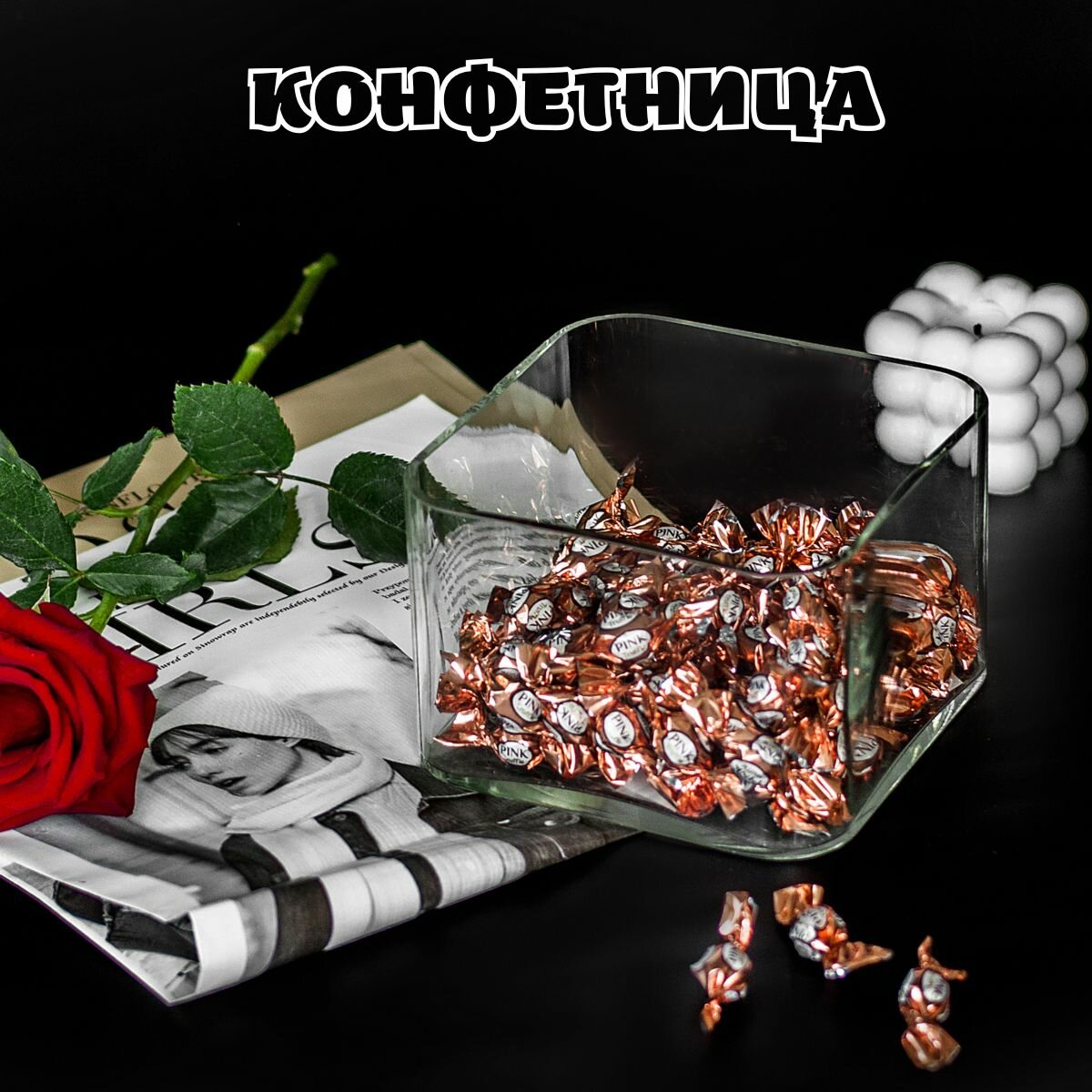 10 цен на Ваза TCS, для конфет, квадратная, стекло, прозрачная, подарок