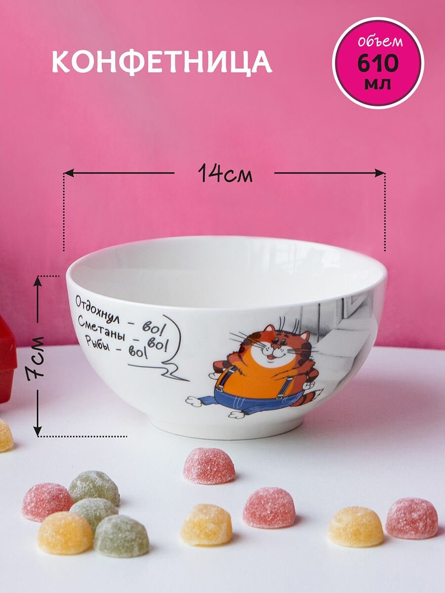 Конфетница/ салатник/ миска в подарочной упаковке 610мл/14см "Попугай Кеша" Коралл. информация: