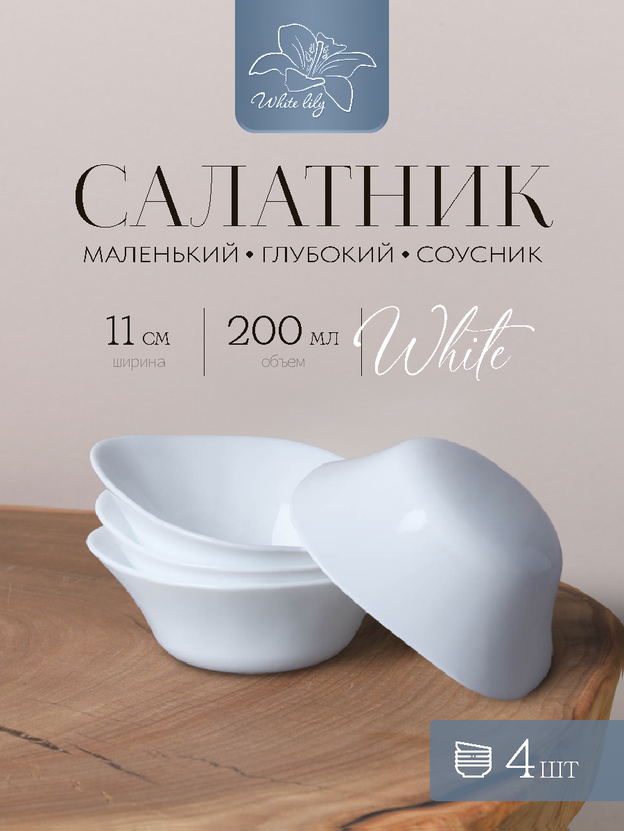 Набор салатников мини квадратных Белые 200 мл - 4 штуки информация: