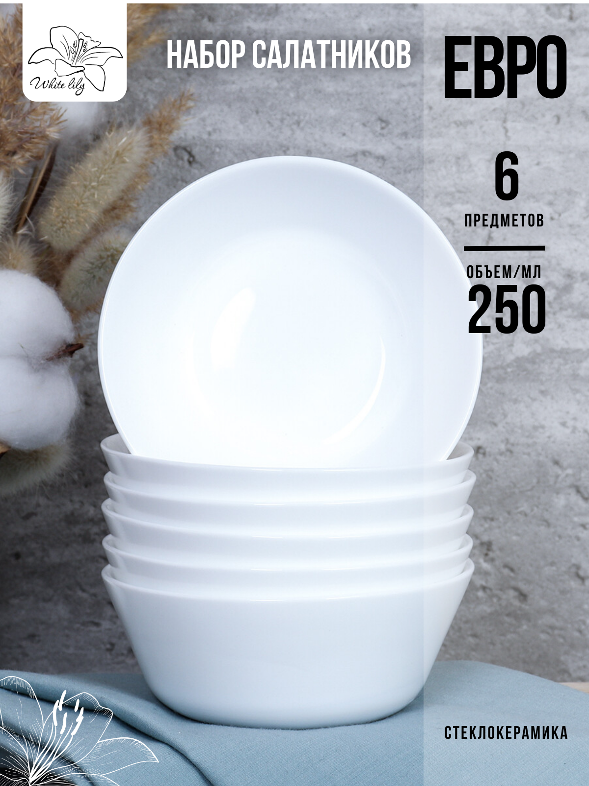 10 цен на Набор салатников "Евро White" 250 мл - 6 штук, стеклокерамика