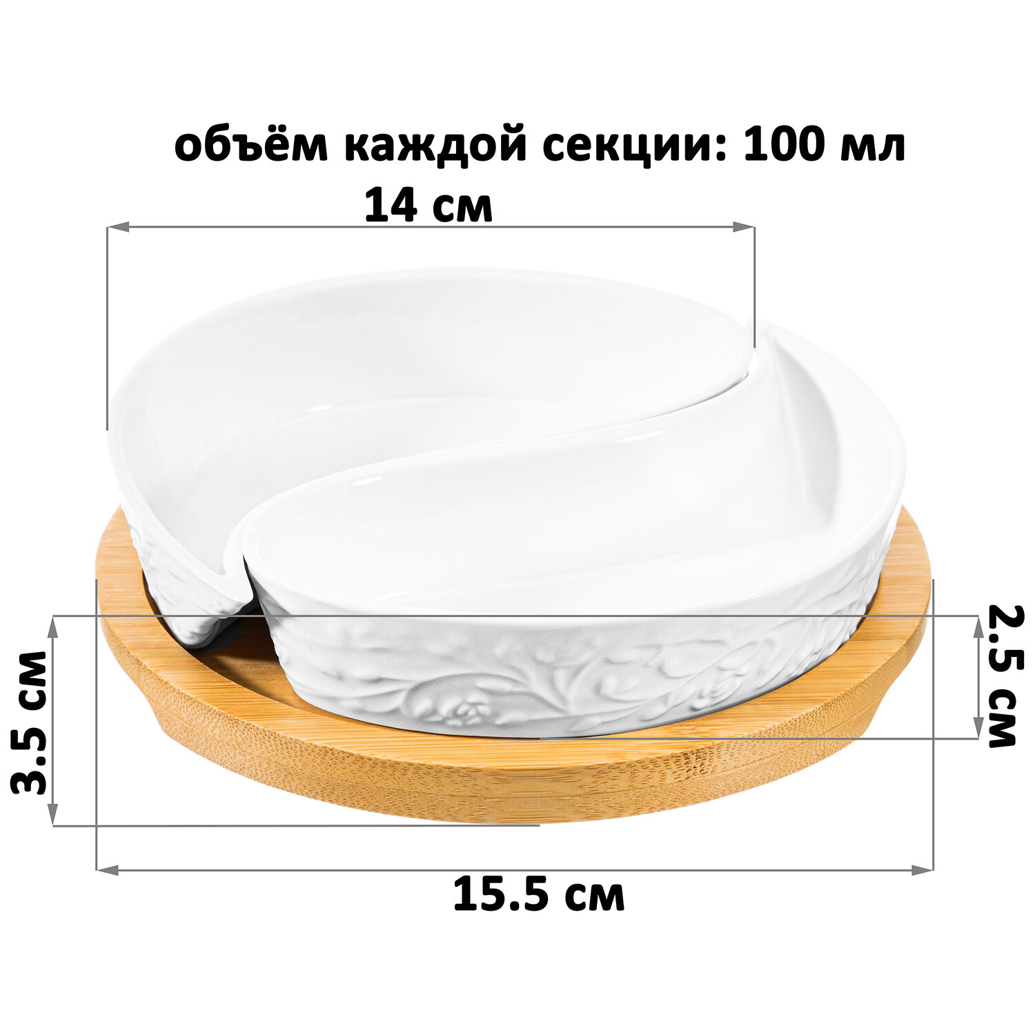 10 цен на Тарелка, блюдо, менажница под оливки 100 мл Elan Gallery Инь-Янь веточки-цветочки, 15,5х15,5х3,5 см, на дер. подставке