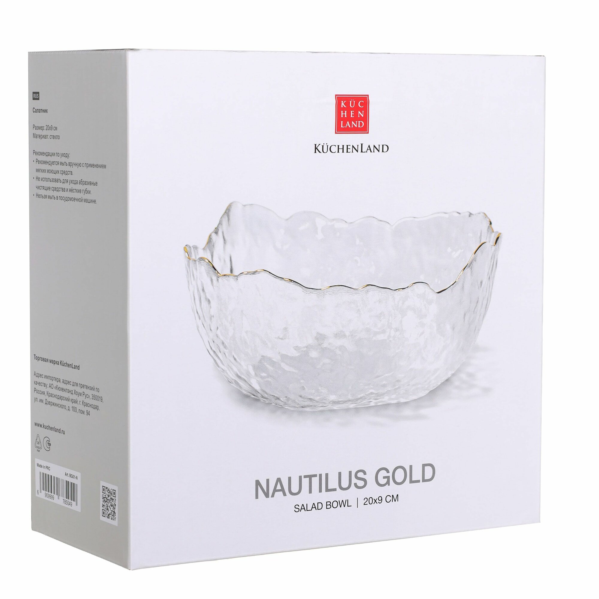 Салатник, Kuchenland, 20х9 см, 1,1 л, стекло, с золотистым кантом, Nautilus gold информация: