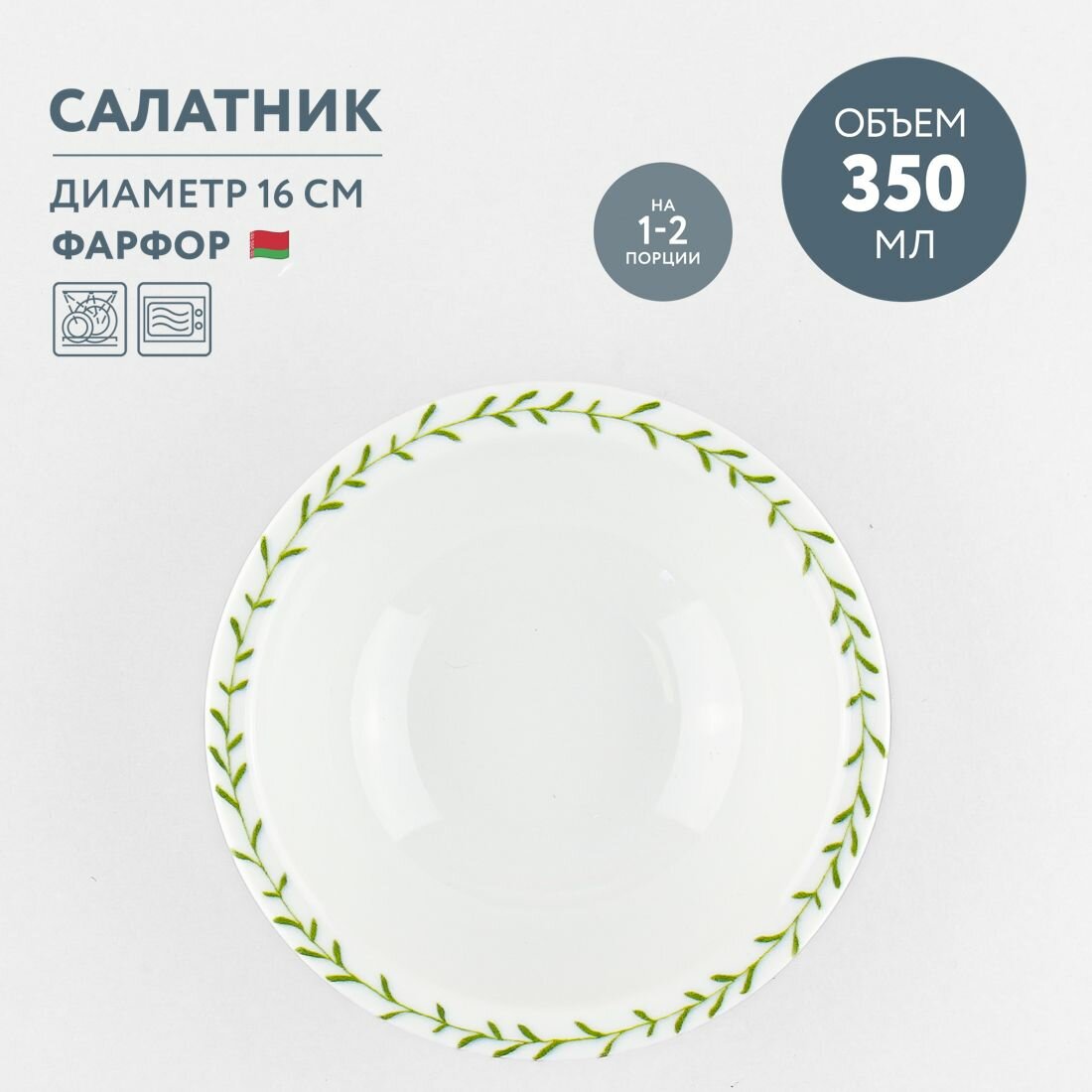 Салатник круглый 350 мл Добрушский фарфор Ботаника информация: