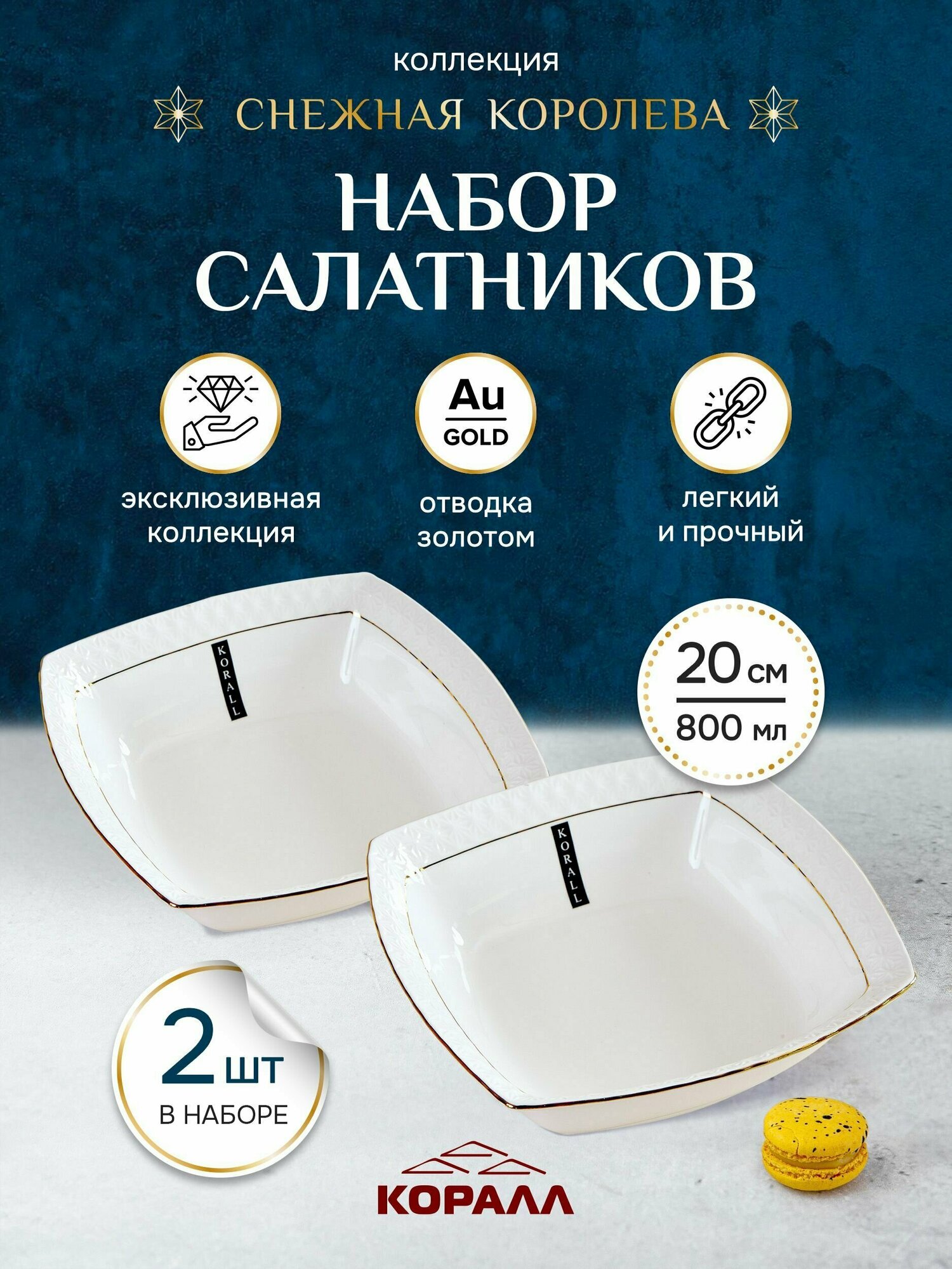 Салатники "Снежная королева" 800 мл, белые, керамика, квадратные набор 2 шт информация: