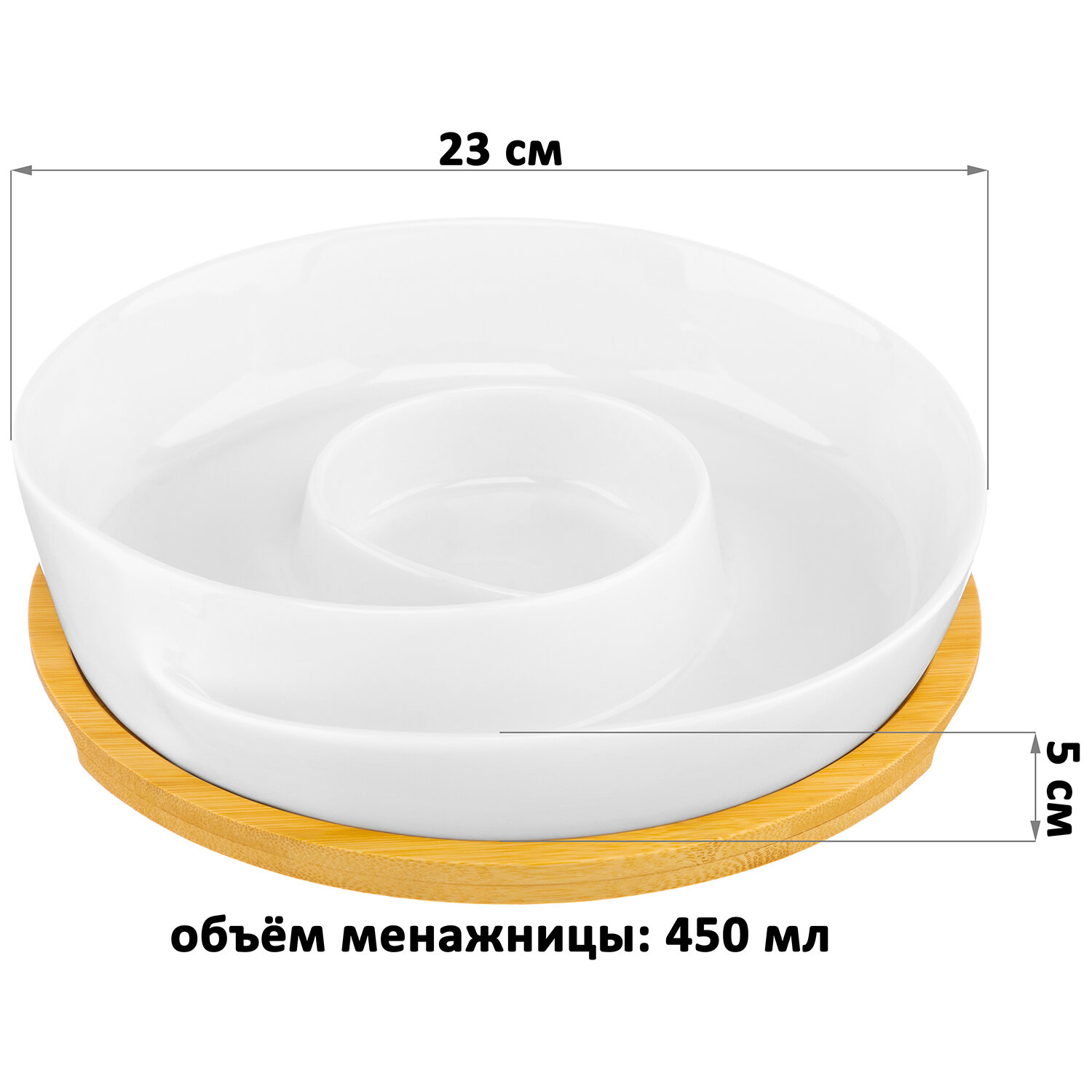 Тарелка сервировочная, менажница 450 мл Elan Gallery "Улитка" 23*23*5 см, глубокая, на деревянной подставке информация: