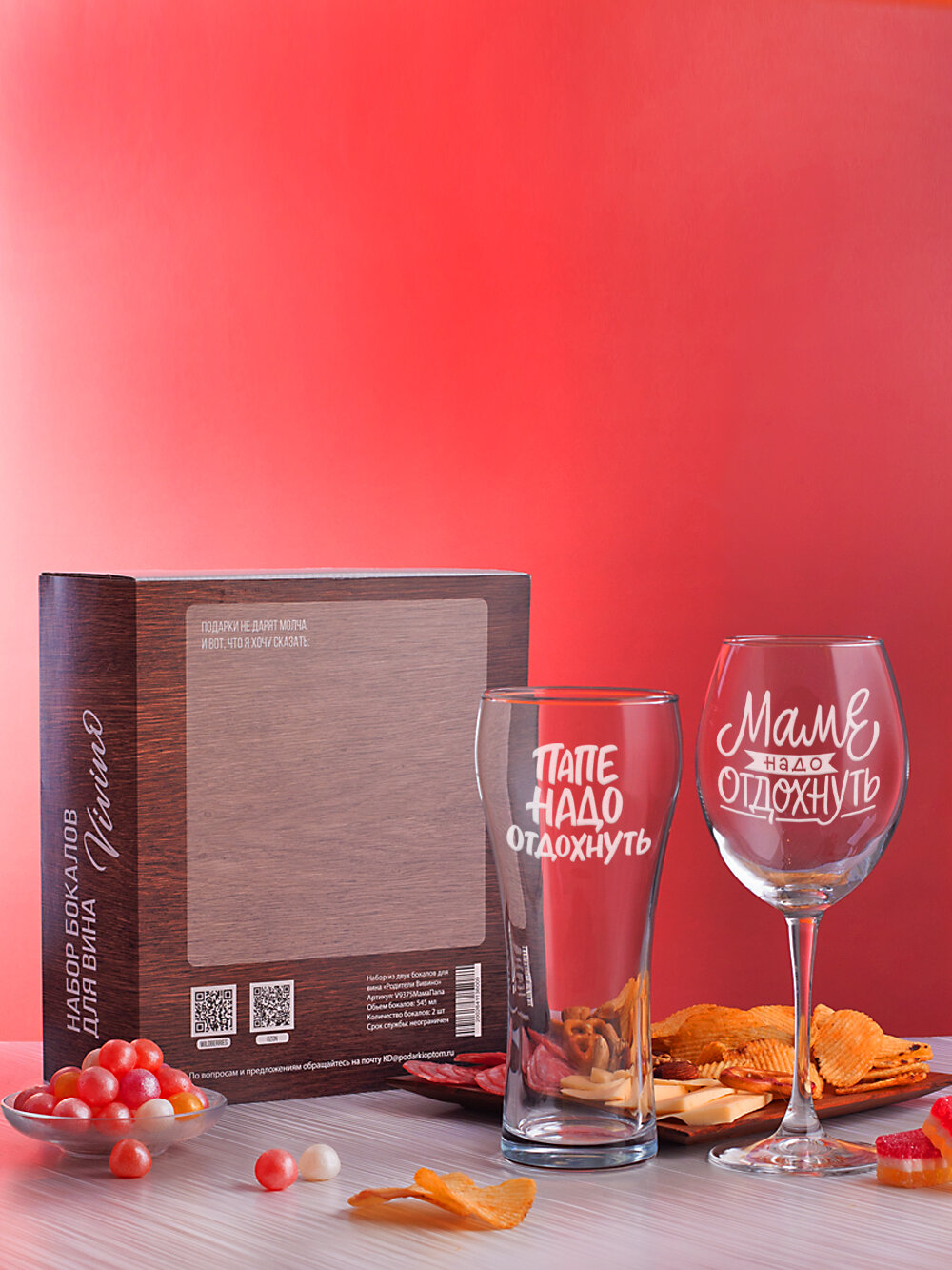 Подарочный набор бокалов для вина и пива с гравировкой информация: