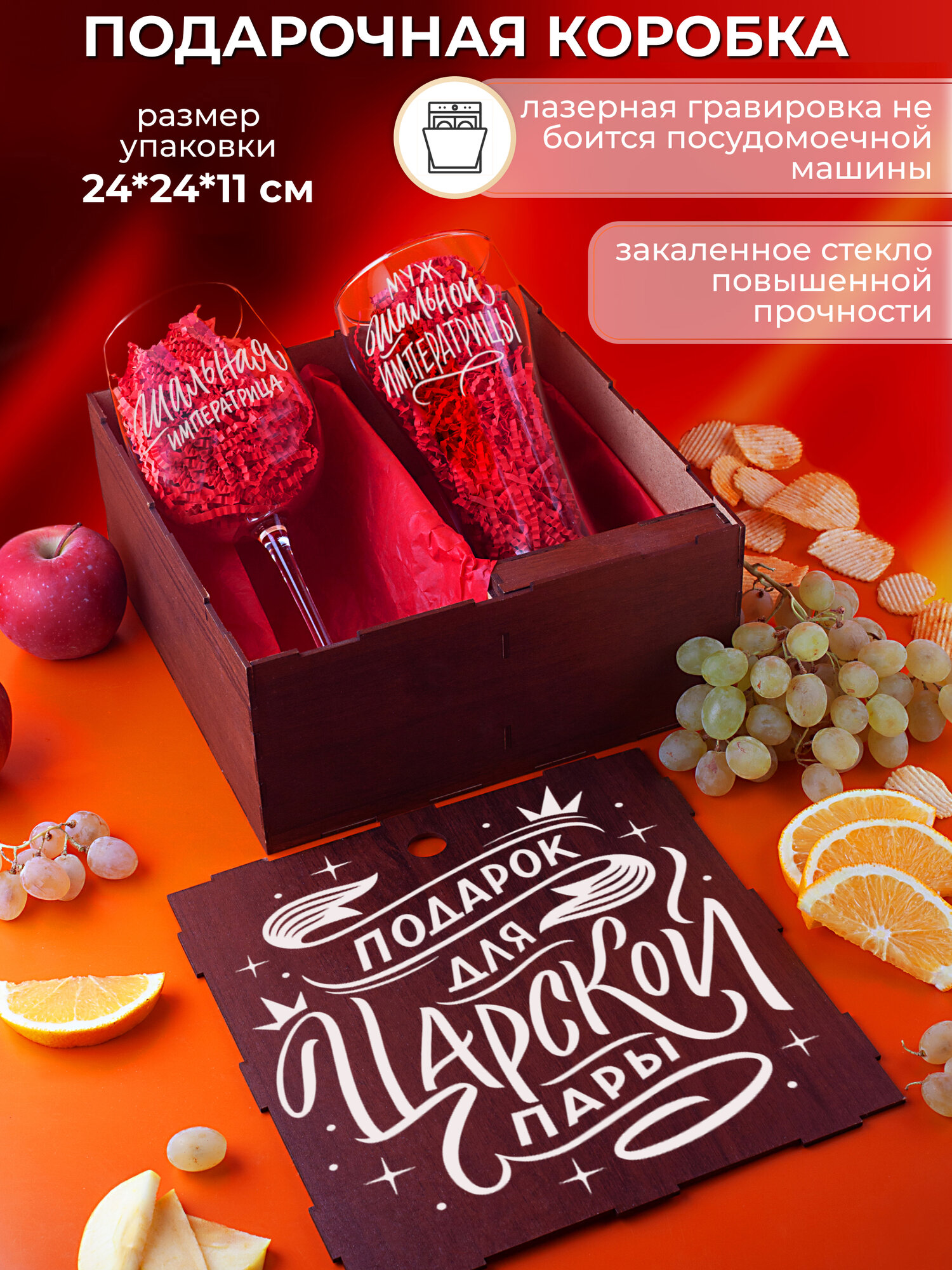 Подарочный набор бокалов с гравировкой в коробке из МДФ 1 290 ₽