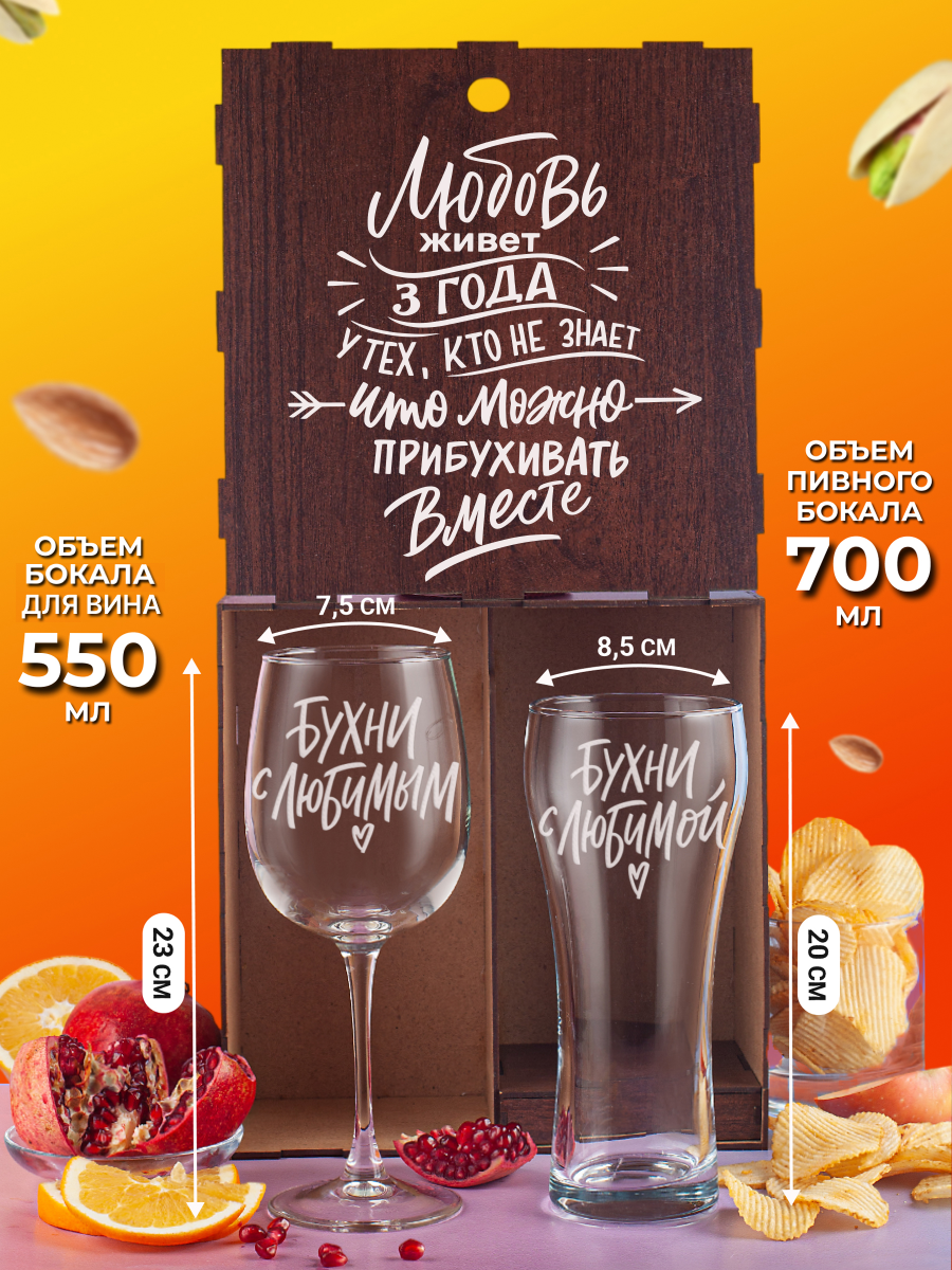 Подарочный набор бокалов для пива и вина для любимых информация:
