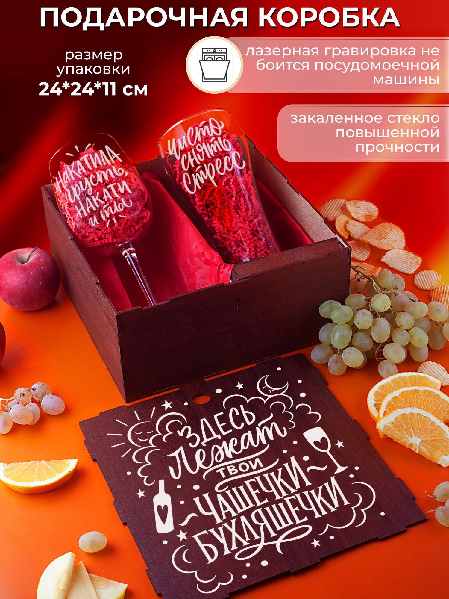 10 цен на Подарочный набор бокалов с гравировкой в коробке из МДФ