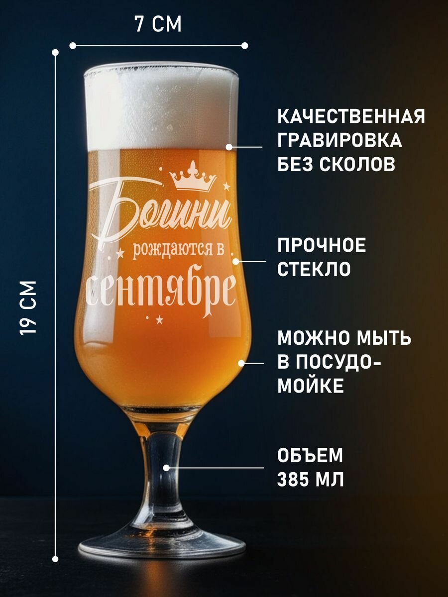 Бокал с надписью для пива LaserGlass Богини рождаются в Сентябре информация: