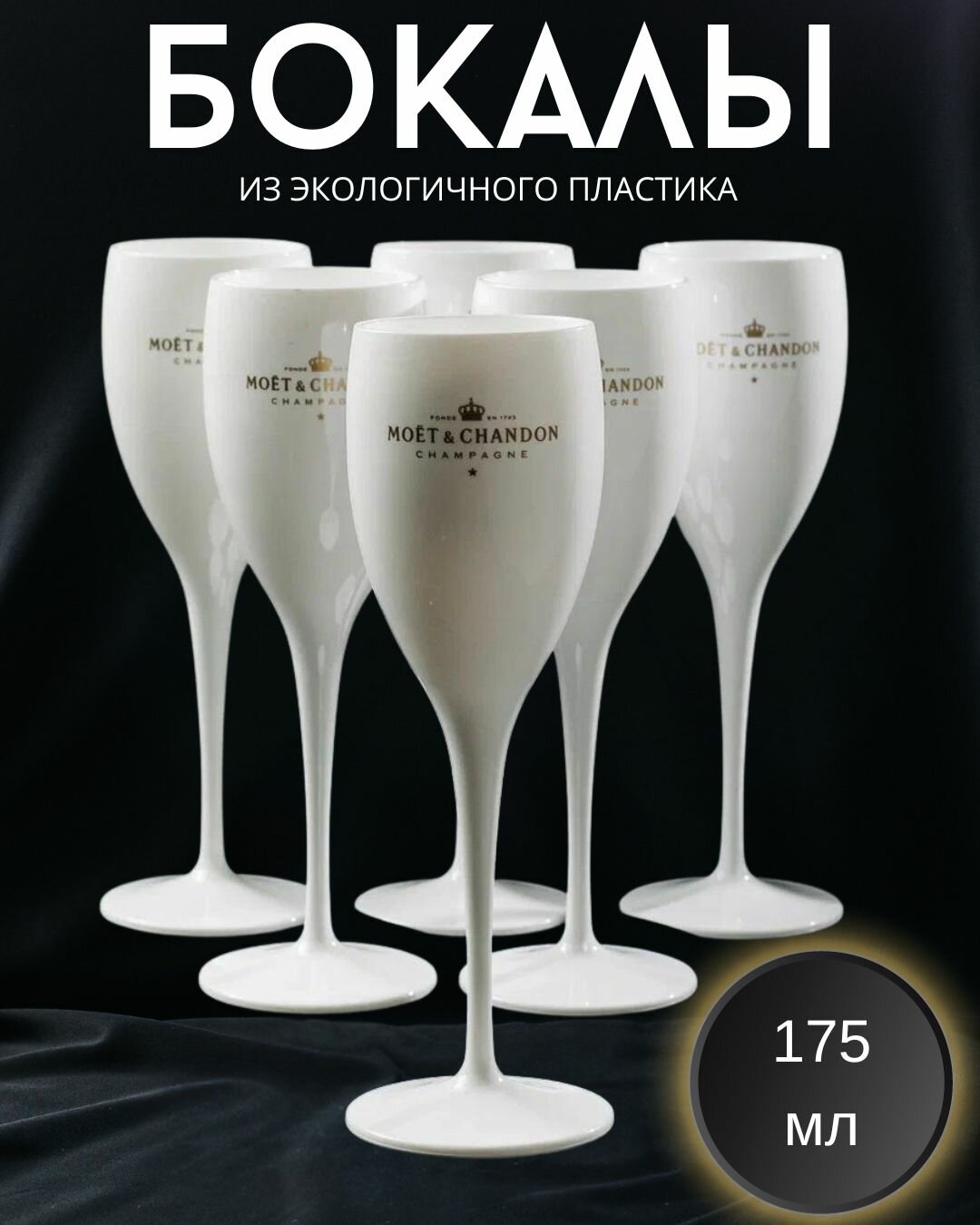 Бокалы пластиковые акриловые небьющиеся для шампанского и вина 175 мл. с гравировкой "MOEТ 6шт. информация: