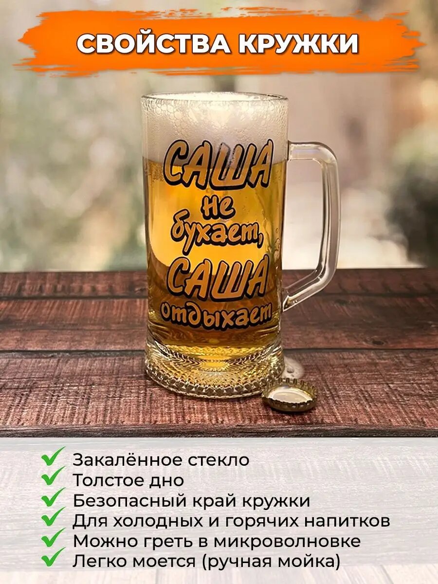 10 цен на Кружка для пива 0,33 мл, Саша не бухает, прозрачное стекло, с именной надписью, АБ Сувениры