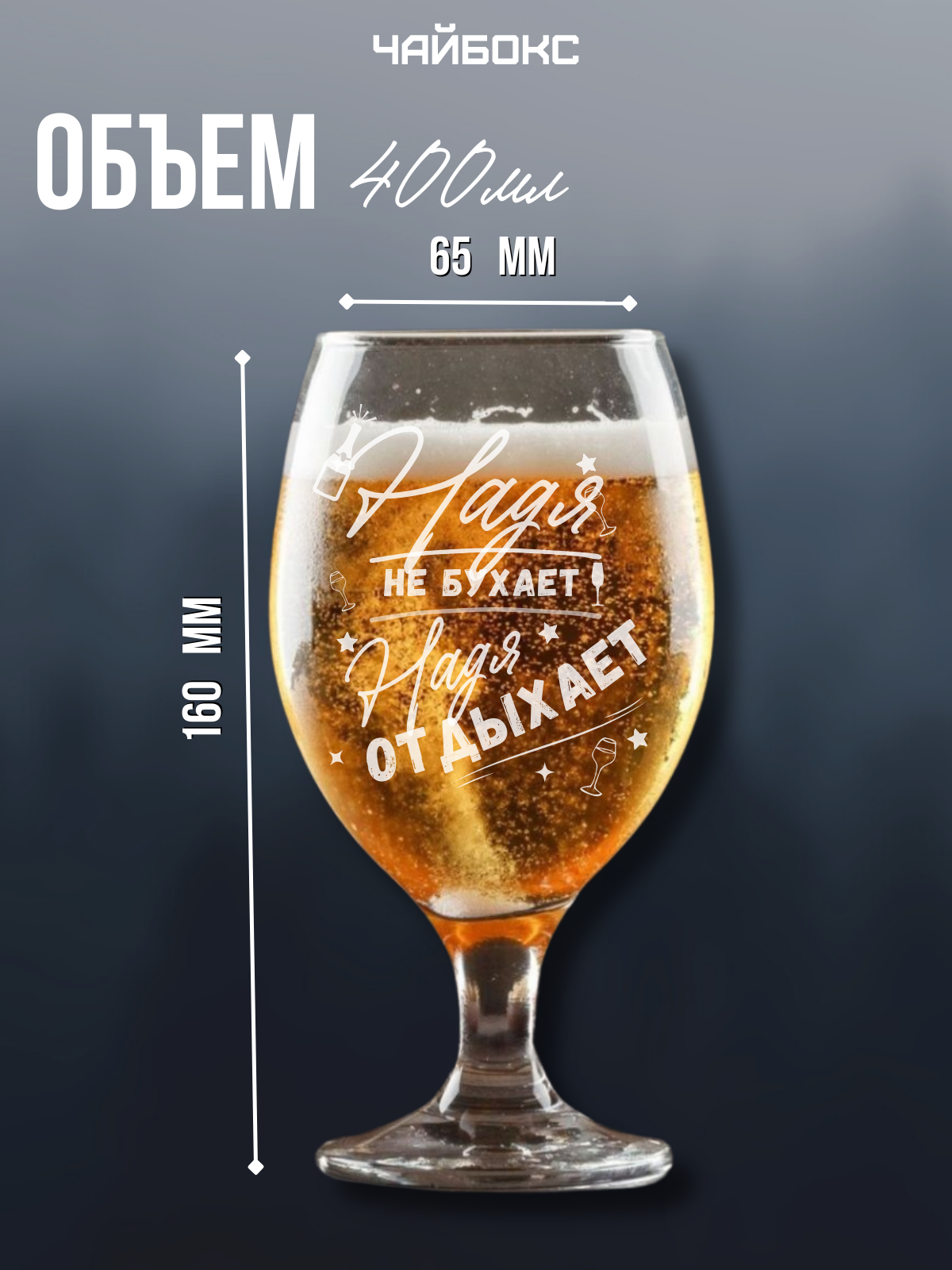 Бокал для пива именной женский для Нади 400 мл с гравировкой, подарок подруге на день рождения и юбилей / 1 шт информация: