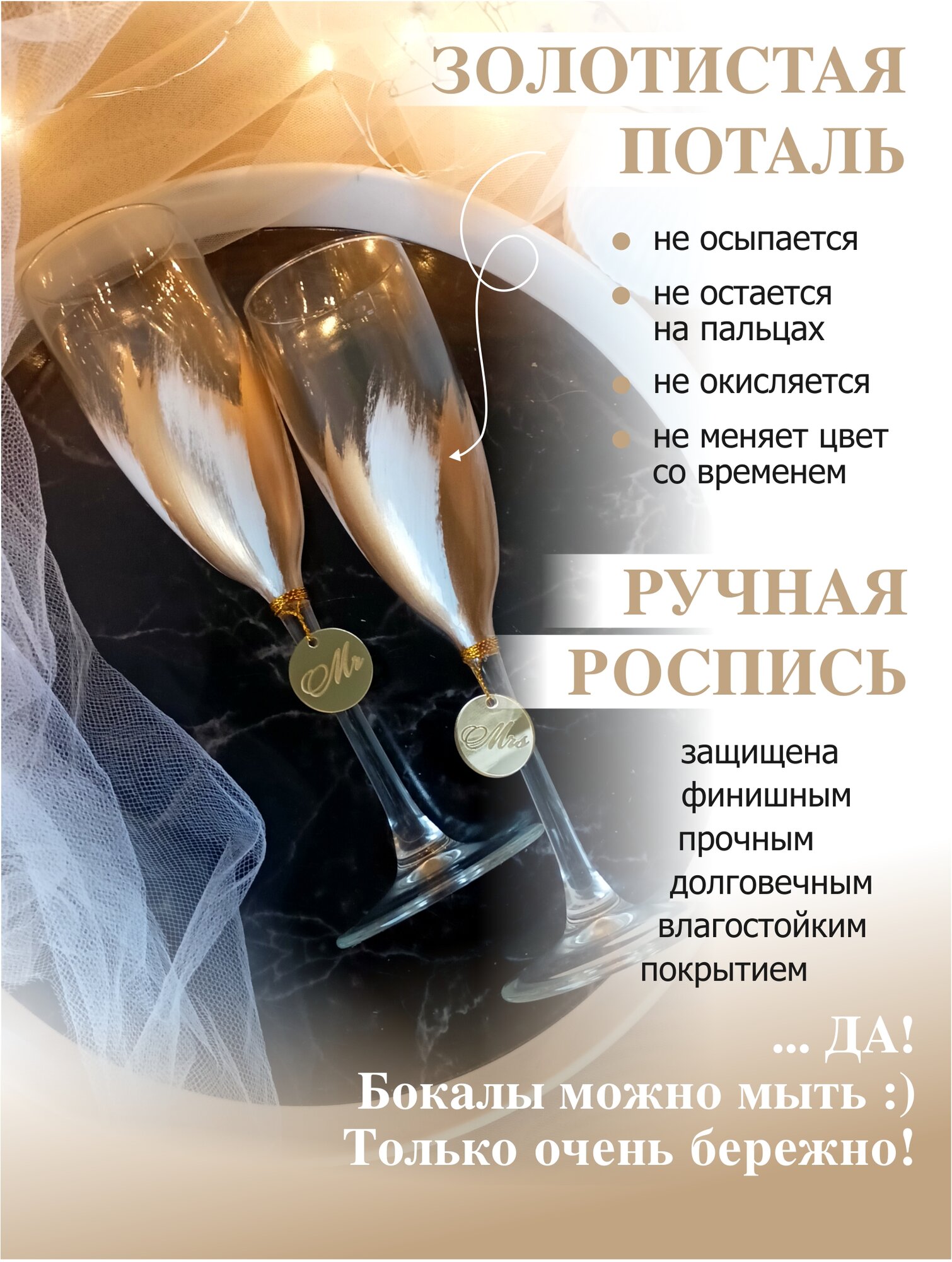 Свадебные бокалы для шампанского золотистые информация: