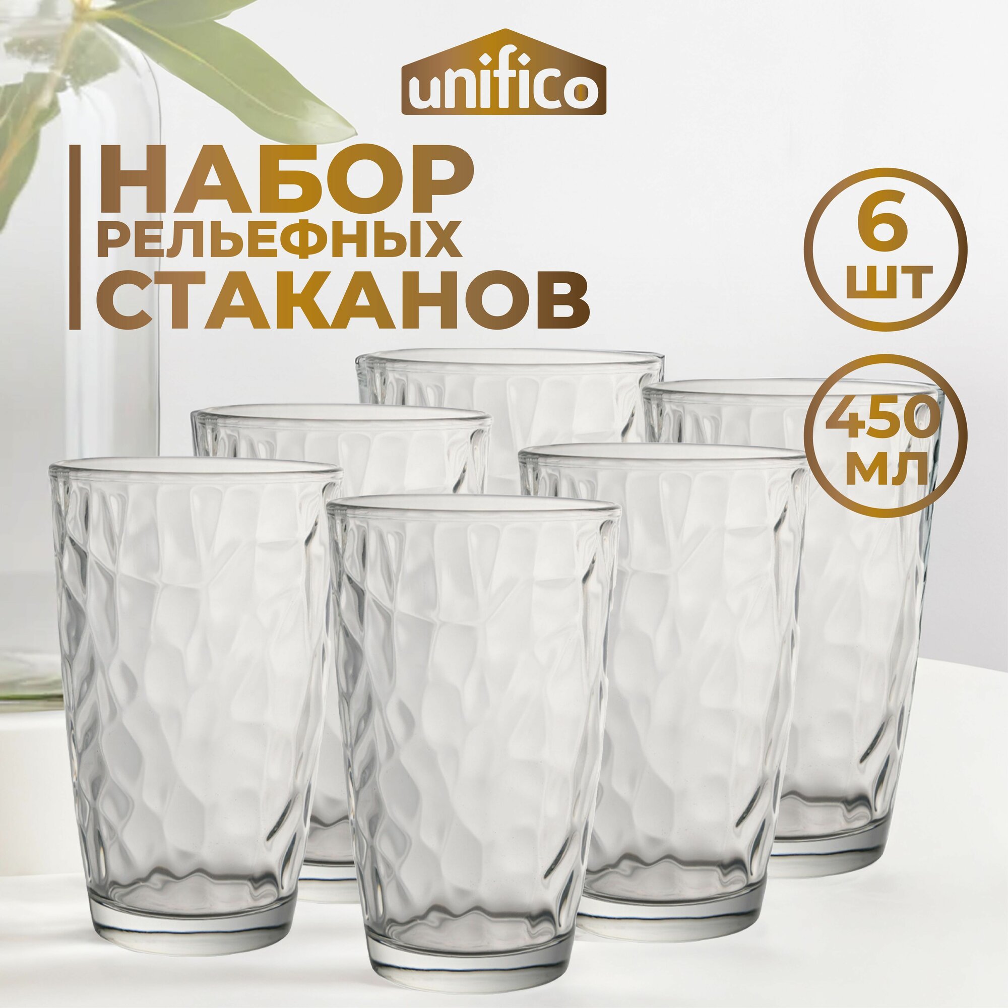 Набор стаканов 450 мл 6 шт. (рельефное стекло) Arezzo UNIFICO информация: