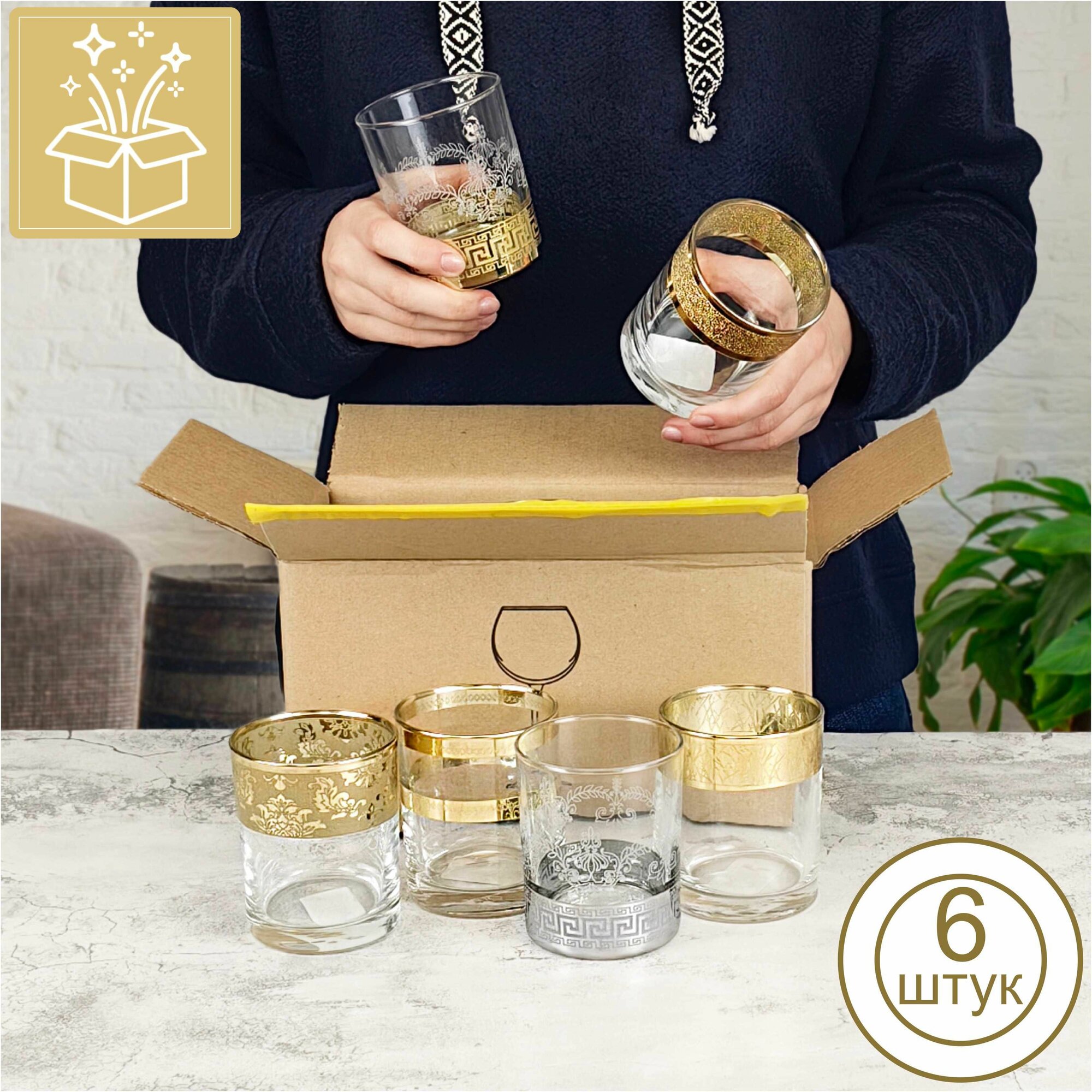Набор стаканов для виски с алмазной гравировкой PROMSIZ сюрприз, 255 мл, 6 шт. информация: