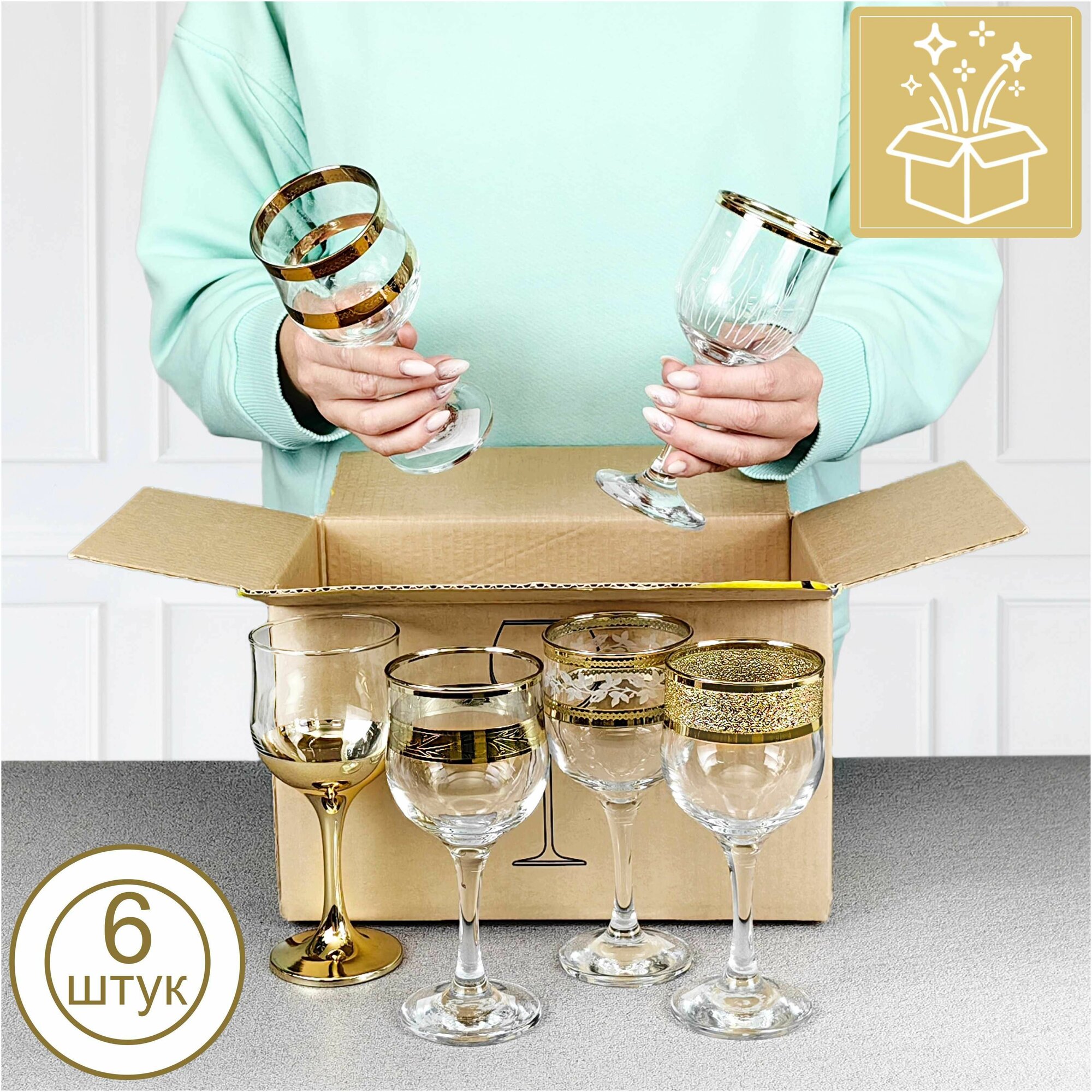 Набор бокалов для вина с алмазной гравировкой PROMSIZ сюрприз, 240 мл, 6 шт. информация:
