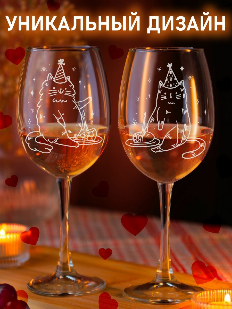 Набор бокалов для вина с рисунком коты празднуют информация: