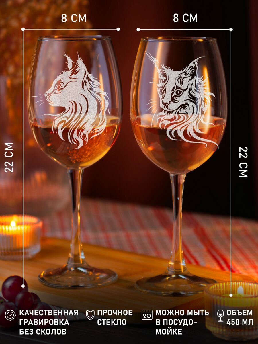 Набор бокалов для вина с рисунком коты празднуют 900 ₽