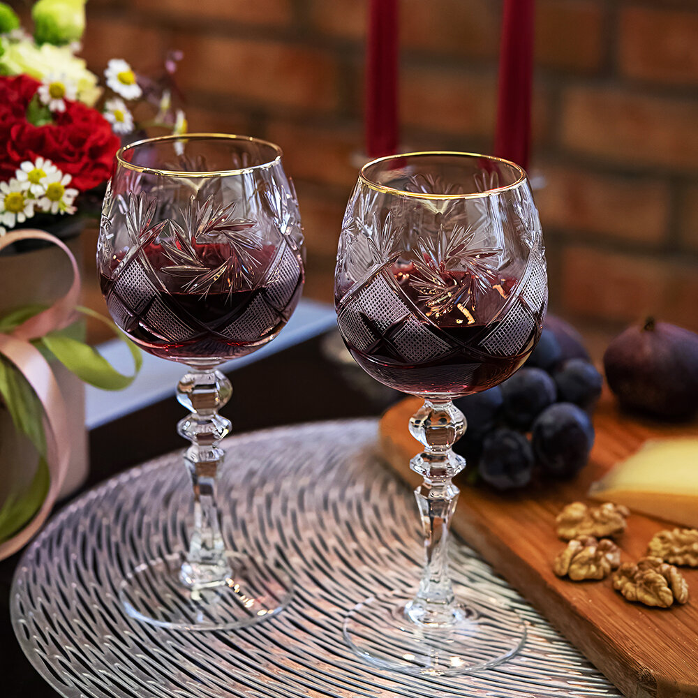 10 цен на Хрустальные фужеры для вина - 300 мл, набор 6 шт, Неман 1000/1, 7565/300гр отводка золотом