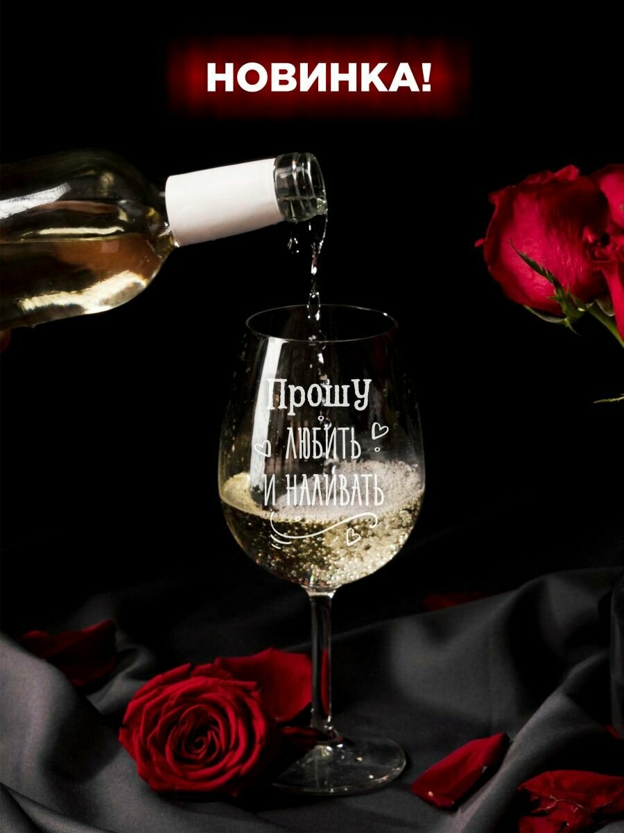 Бокал с надписью для вина Прошу любить и наливать информация:
