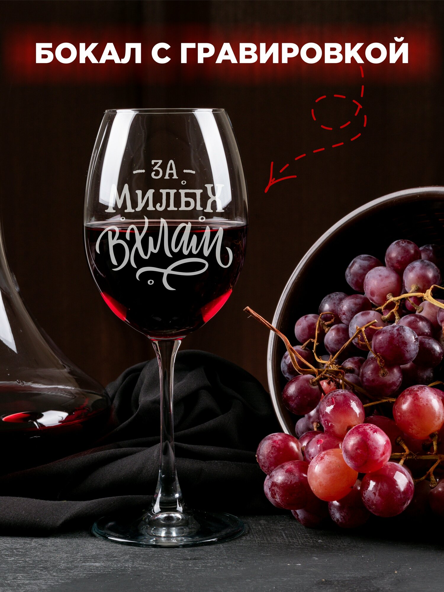 Бокал с надписью "За милых Вхлам" для вина 450 мл. Подарок маме, бокал с гравировкой подруге, фужеры для вина LaserGlass информация: