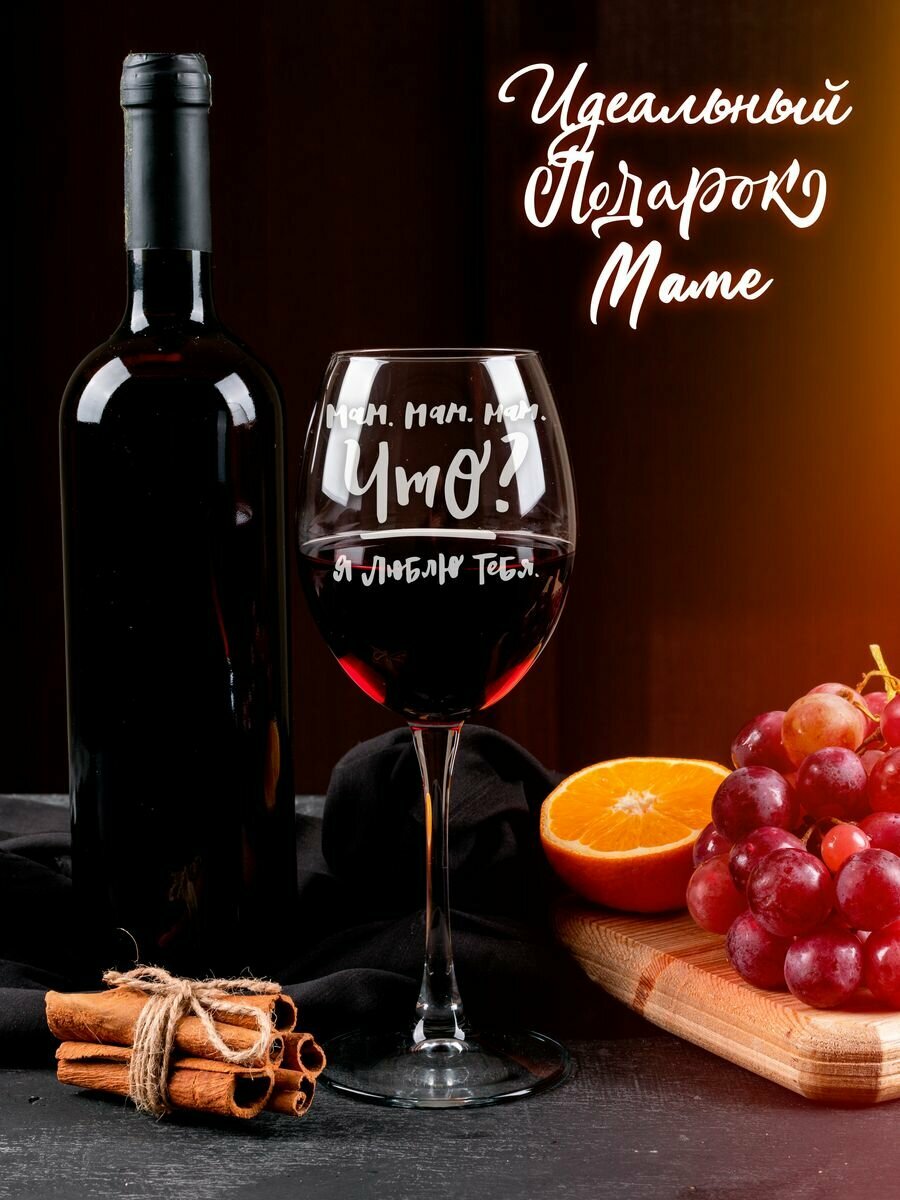 Бокал с надписью "Самая лучшая мама" для вина 450 мл. Подарок маме, бокал с гравировкой подруге, фужеры для вина LaserGlass 730 ₽