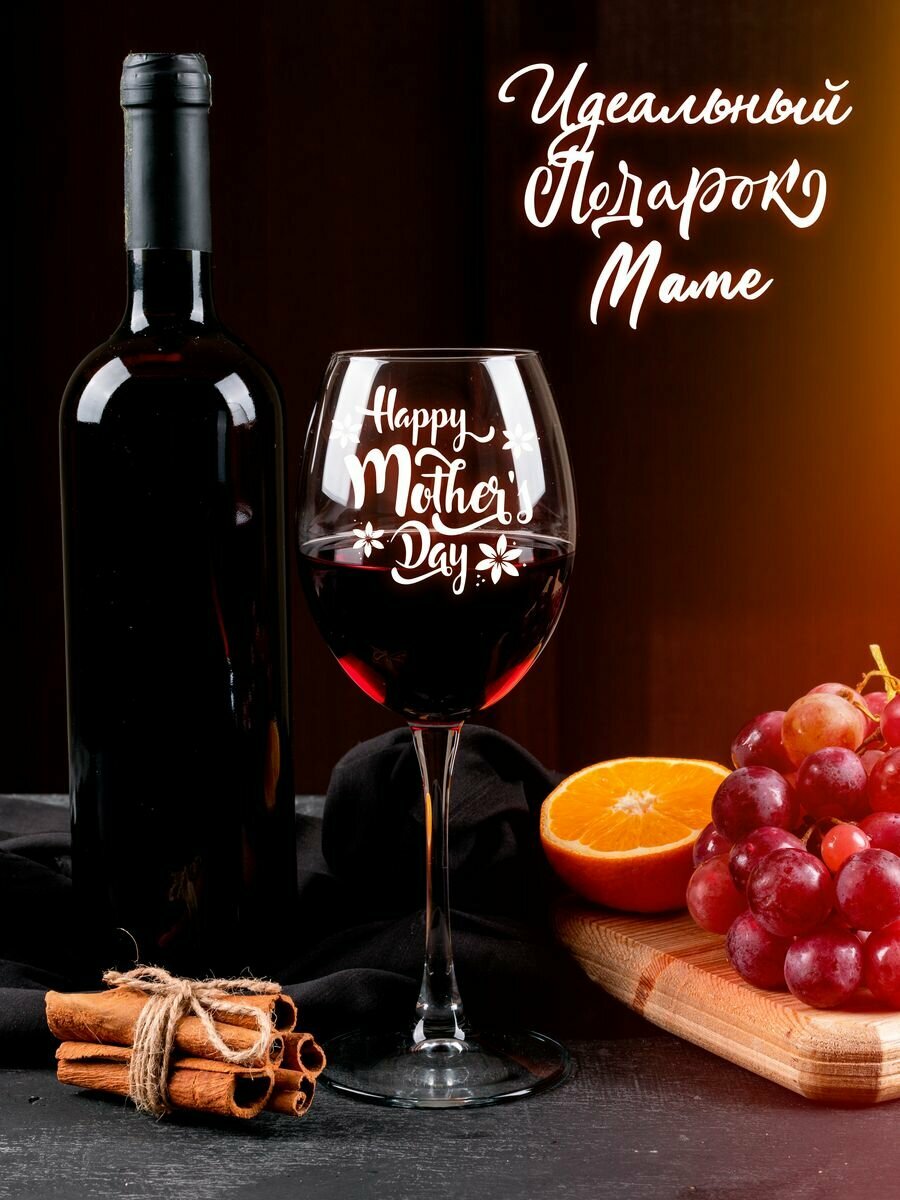 Бокал с надписью "Самая лучшая мама" для вина 450 мл. Подарок маме, бокал с гравировкой подруге, фужеры для вина LaserGlass 730 ₽