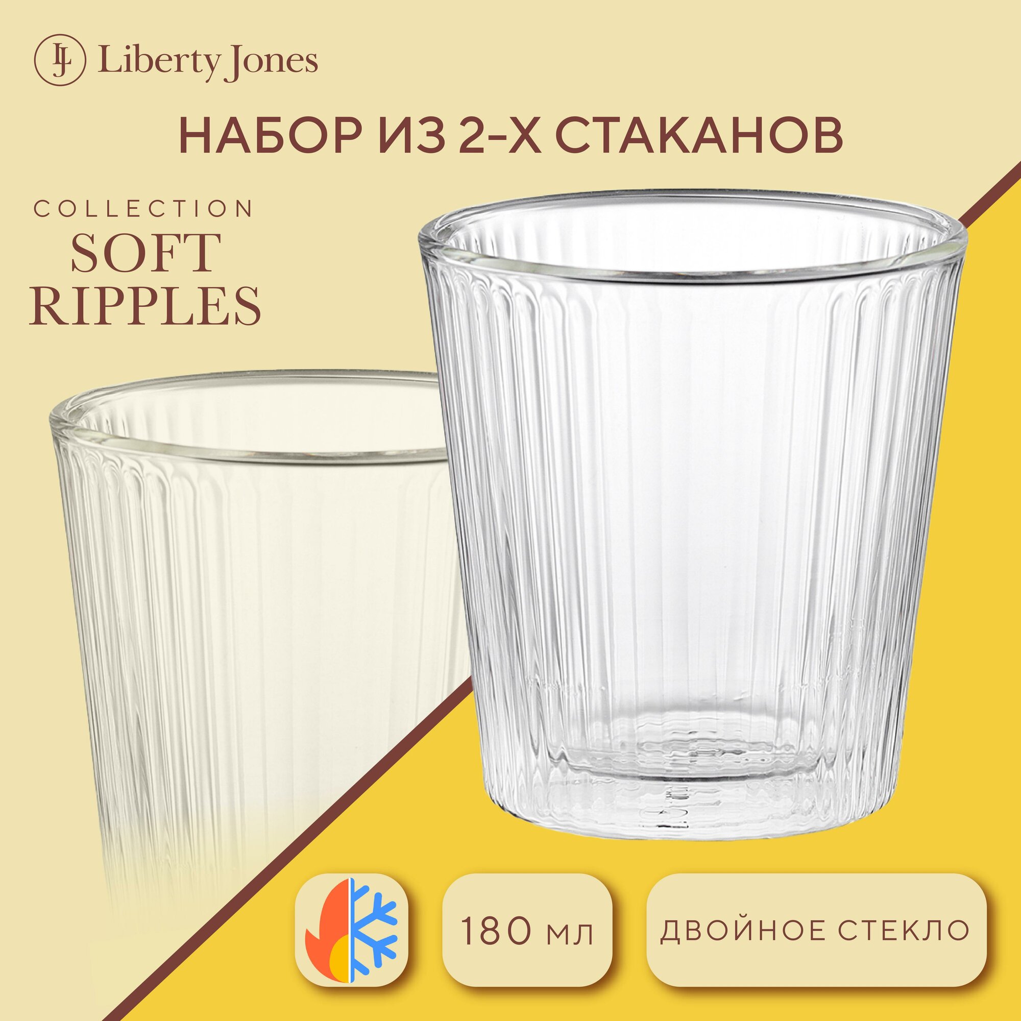 Стакан Soft Ripples 180 мл стеклянный маленький набор из 2 шт Liberty Jones LJ0000274 информация: