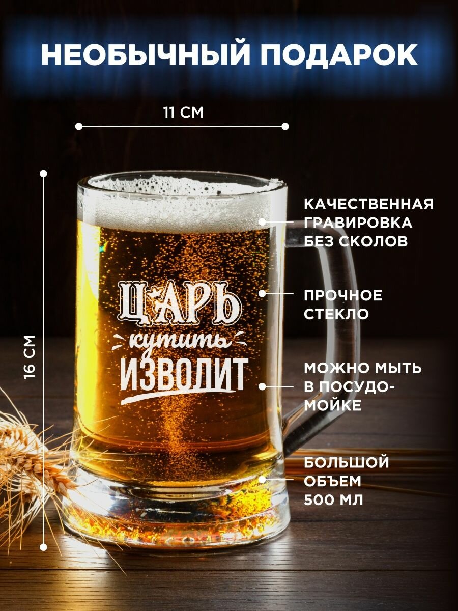 10 цен на Кружка пивная с надписью Царь кутить изволит
