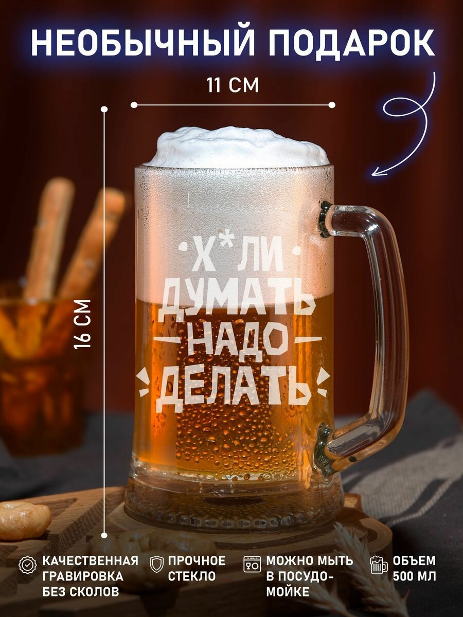 Бокалы пивной с надписью х*ли думать надо делать информация: