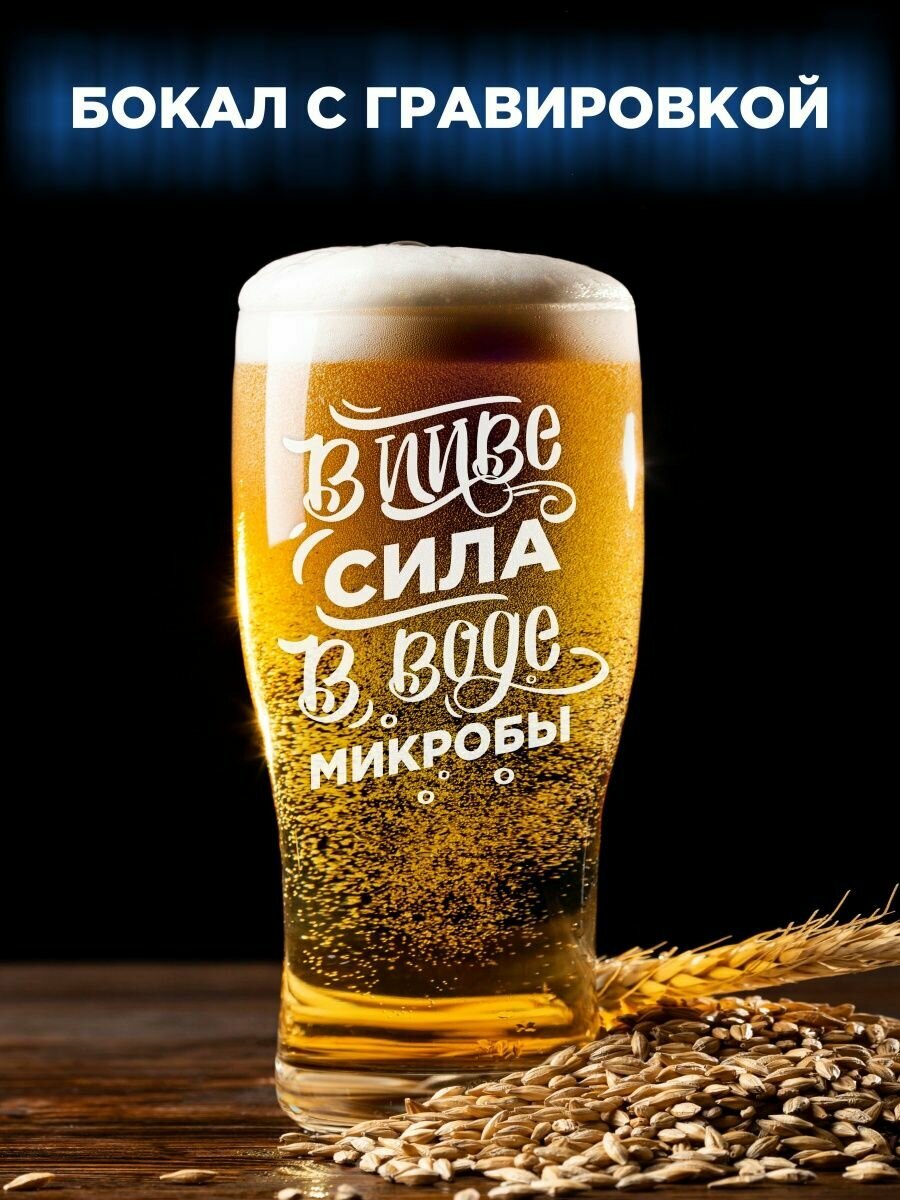 Бокал для пива LaserGlass с гравировкой В пиве сила в воде микробы 700 ₽