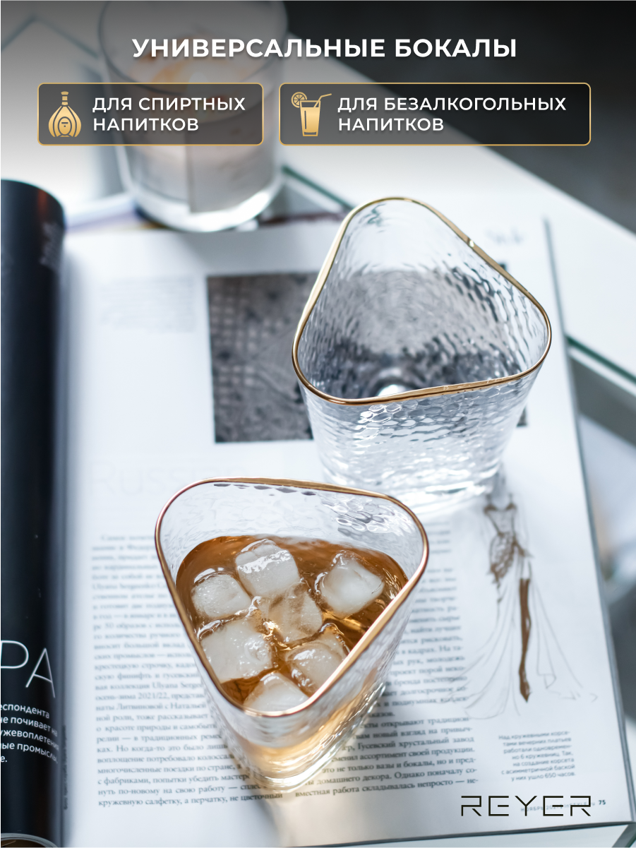 Бокалы для виски, воды, сока, коктейлей Reyer 2 шт, 300 мл, ручная работа, закалённое стекло информация: