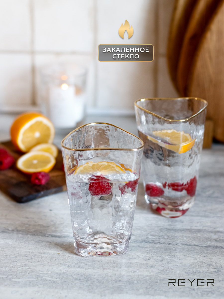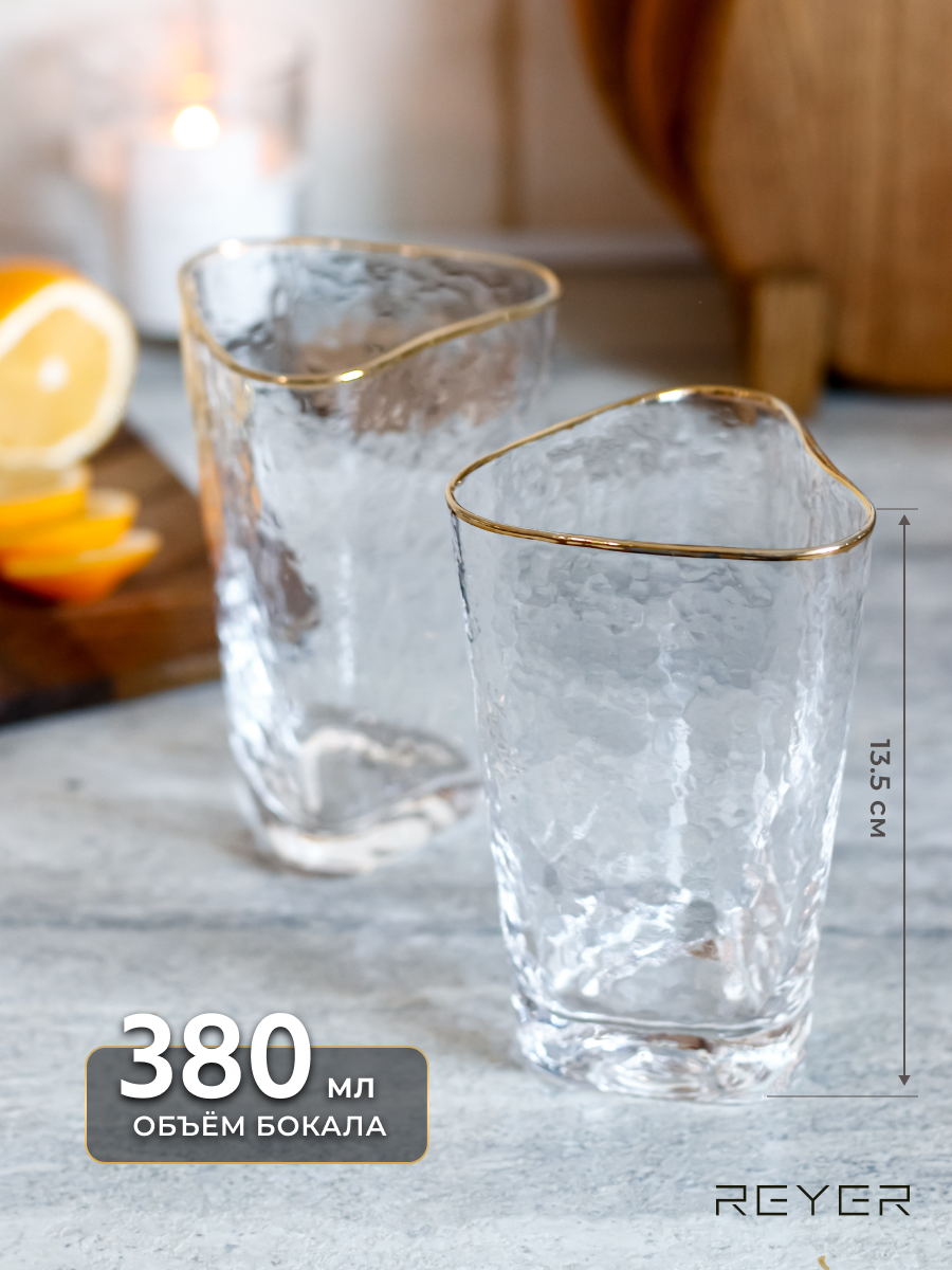 Отзывы на Бокалы для воды, сока, коктейлей Reyer 2 шт, 380 мл, ручная работа, закалённое стекло