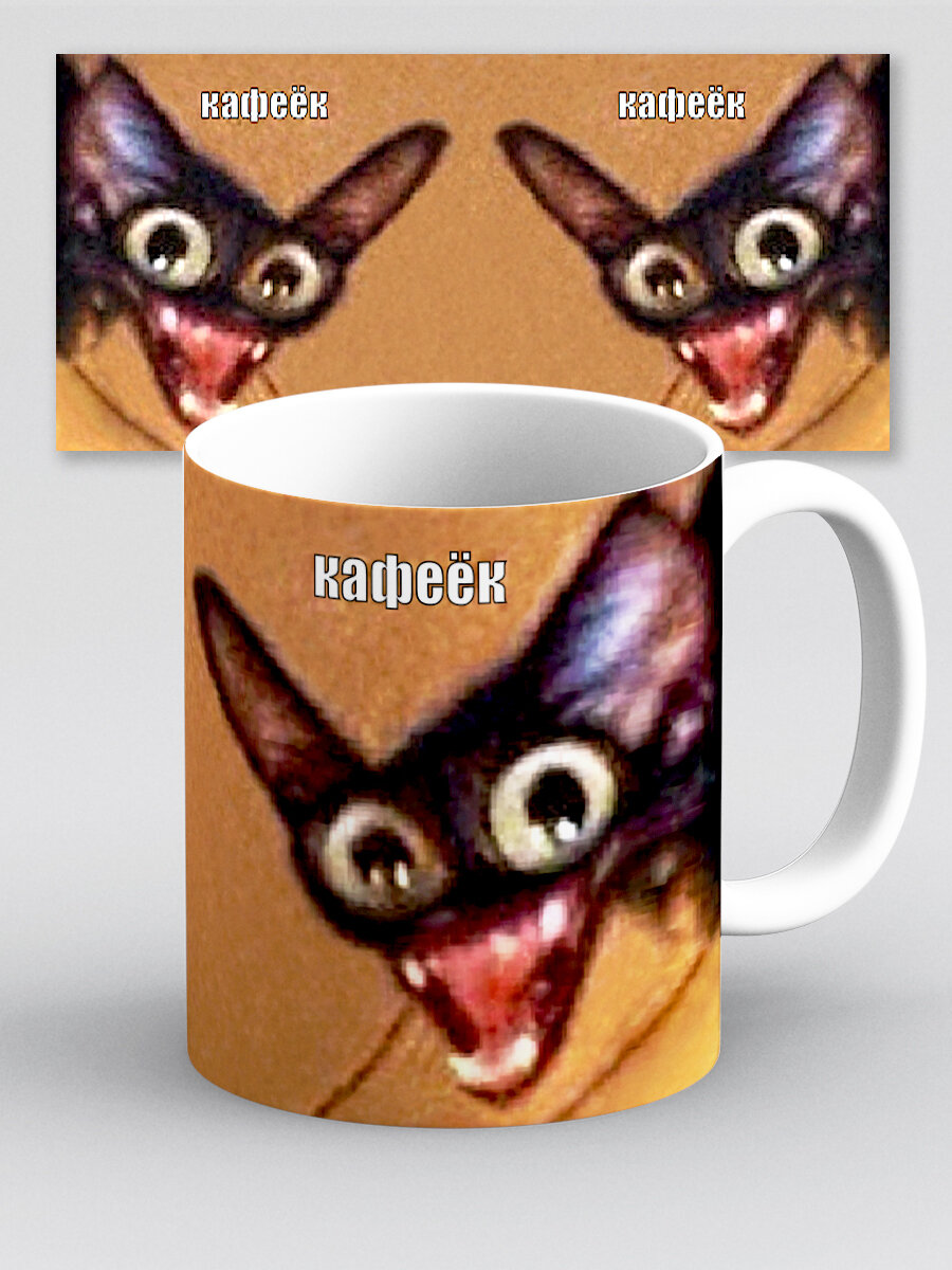 10 цен на Кружка с приколом мем с котиком Кофе Кафеек с двух сторон улыбается