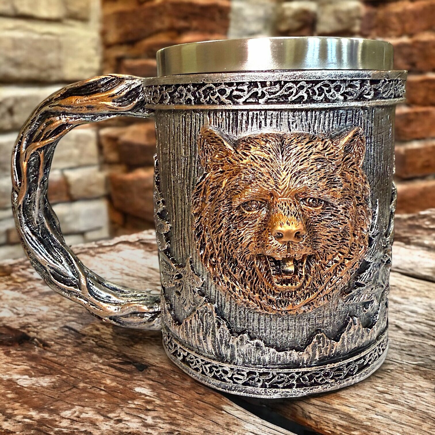 Отзывы на Кружка VIttovar "Медведь", металл, полистоун, серебристо-коричневая, 450мл