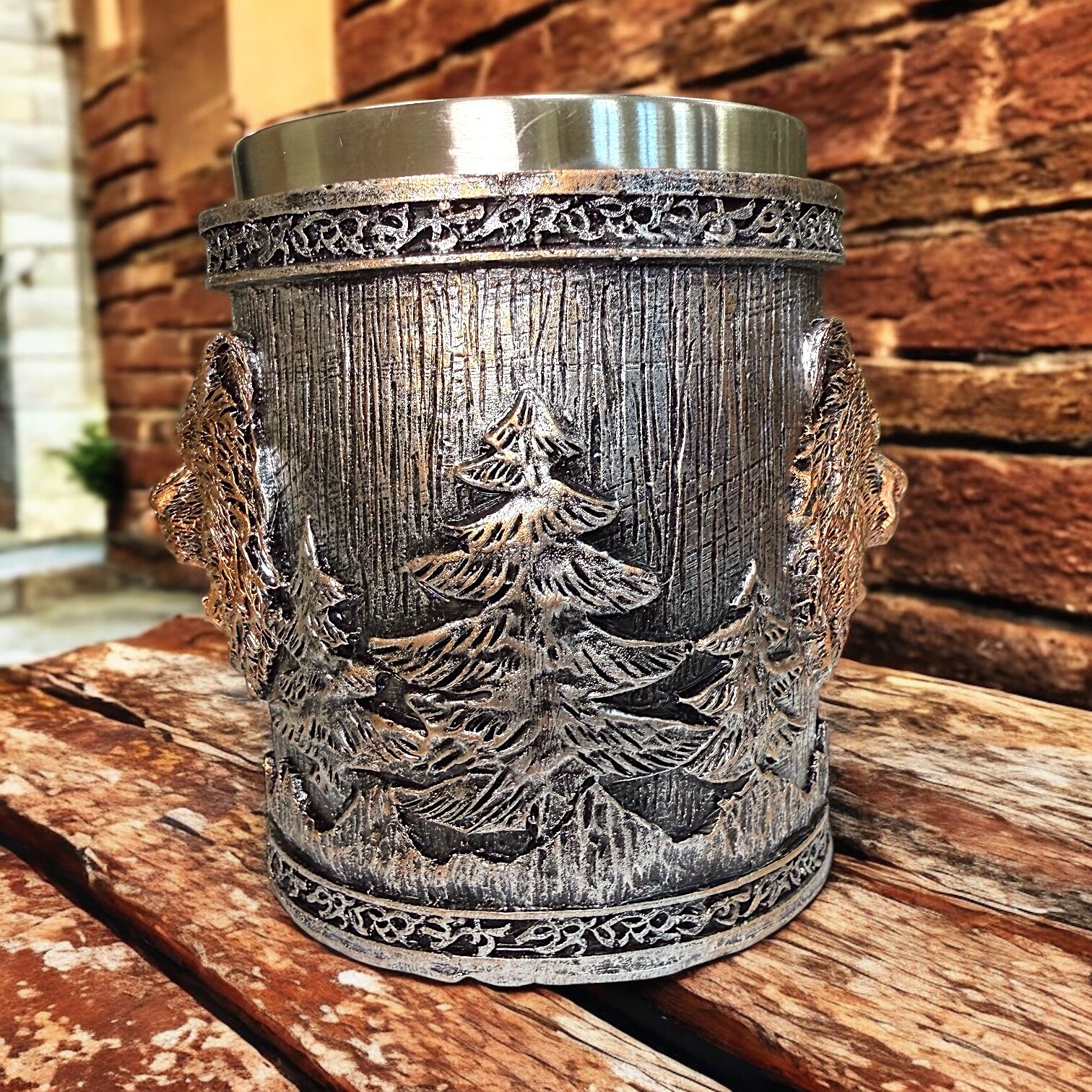 Кружка Vittovar "Волки", нержавеющая сталь/полистоун, для напитков, 450мл, серебристая 1 100 ₽