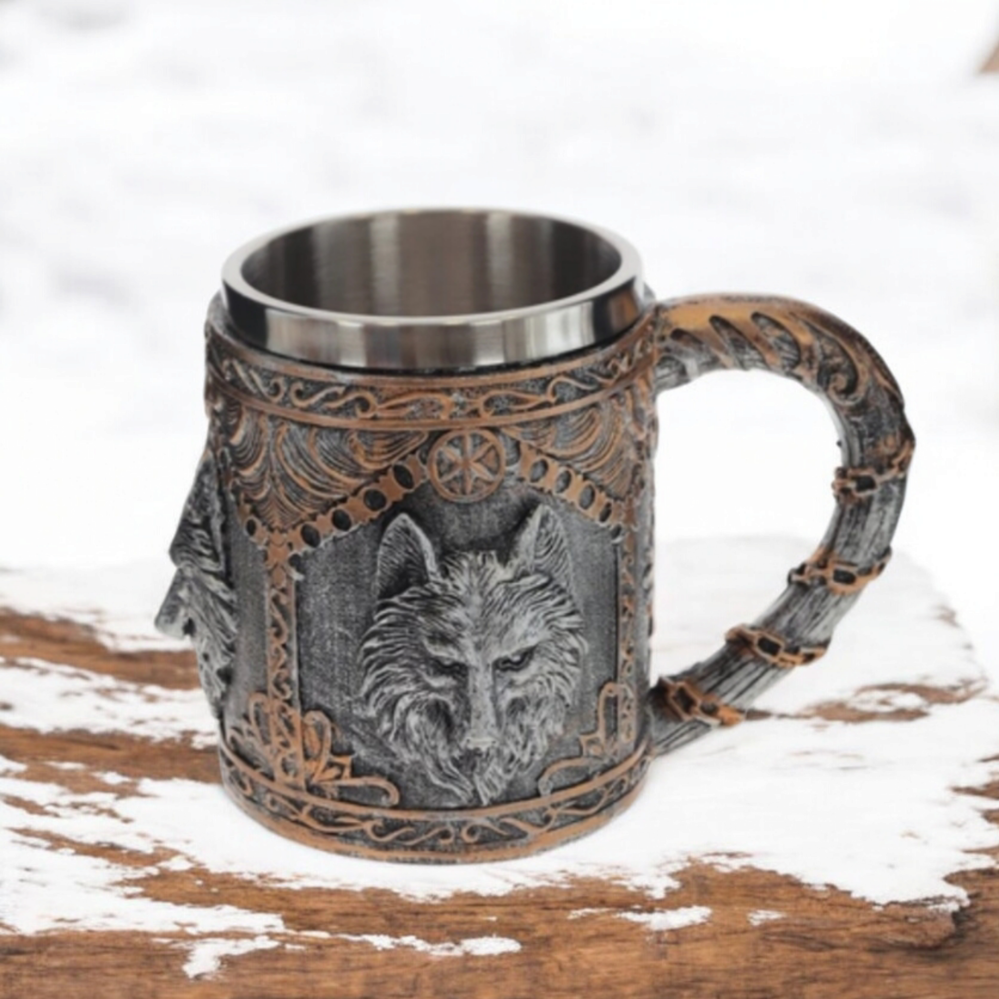 10 цен на Кружка Vittovar "Волки", нержавеющая сталь/полистоун, для напитков, 450мл, серебристая