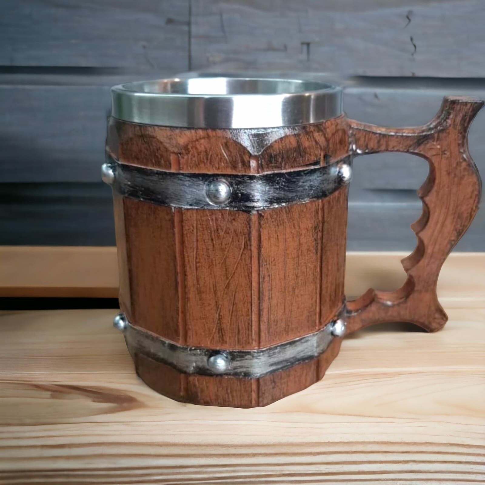 Кружка VITtovar "Пивная бочка", 3D полистоун и нержавеющая сталь, 450мл коричневая 1 100 ₽