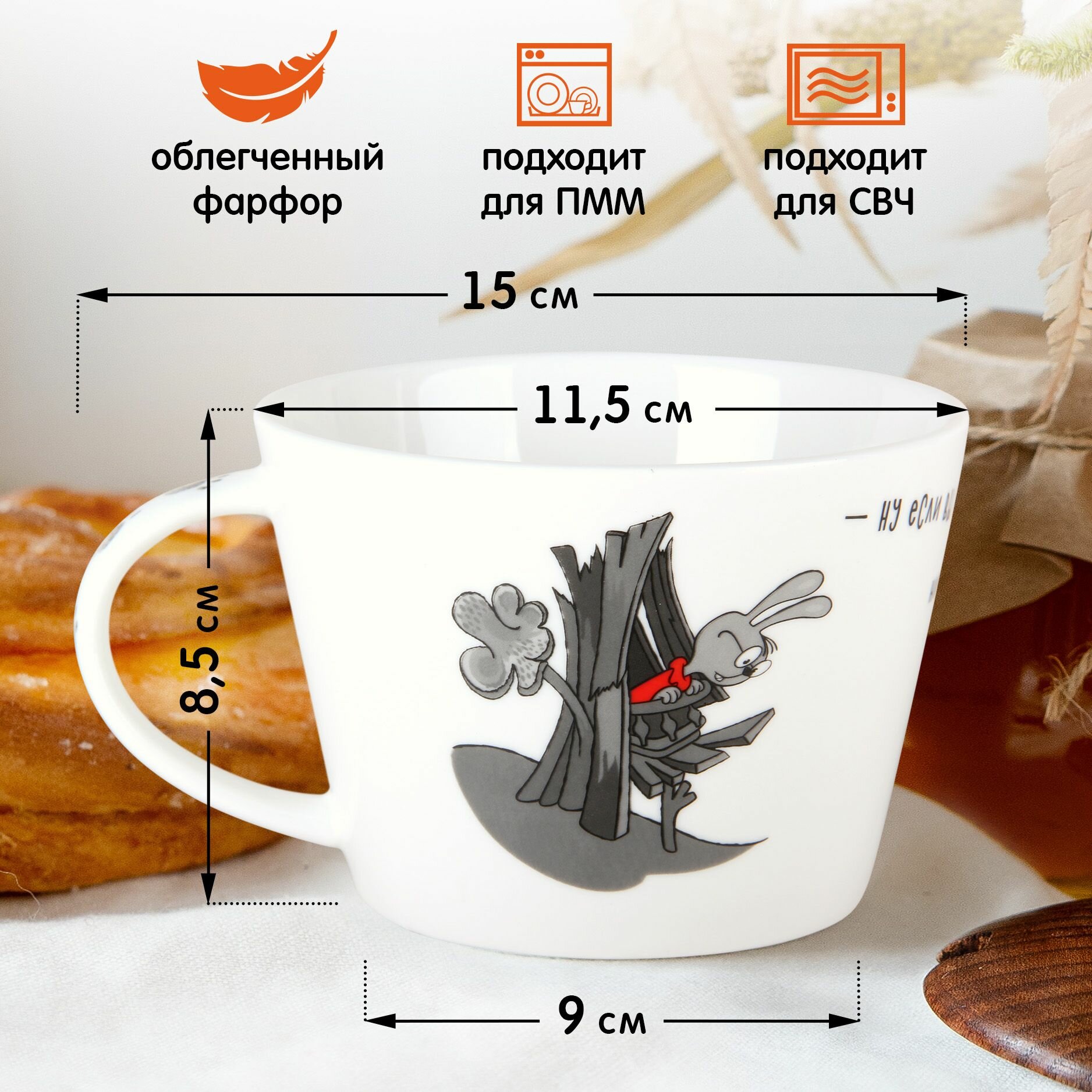 Кружка большая белая фарфор 420 мл. в подарочной упаковке. Бременские музыканты принт "Петь птицы перестали." 955 ₽