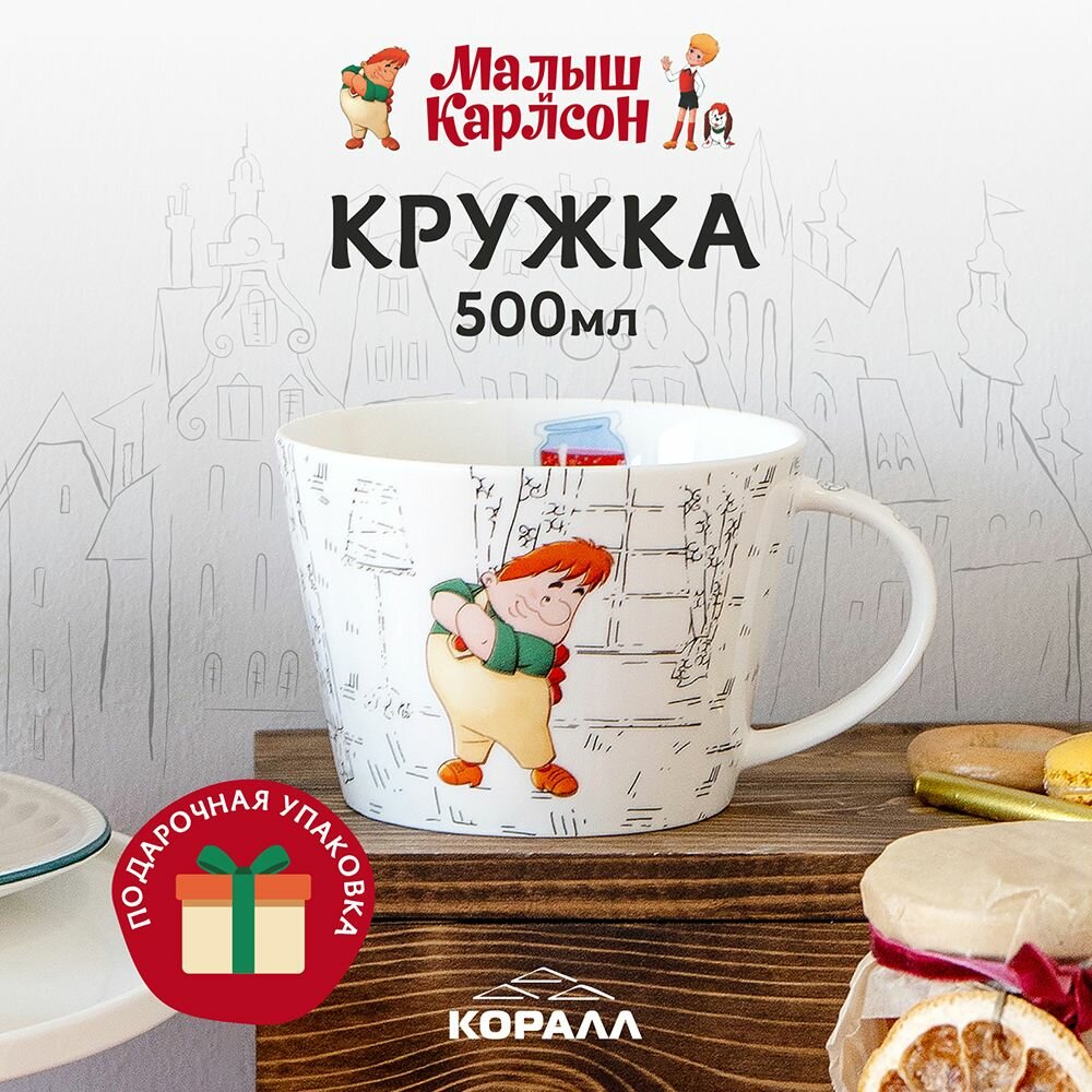 Кружка большая белая фарфор "Малыш и Карлсон" 500 мл. в подарочной упаковке. Коралл информация: