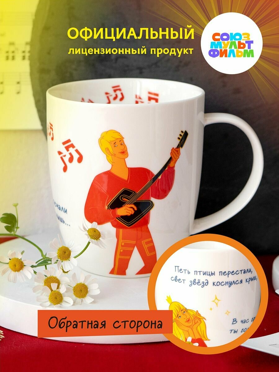 10 цен на Кружка большая белая фарфор 420 мл. в подарочной упаковке. Бременские музыканты принт "Петь птицы перестали."