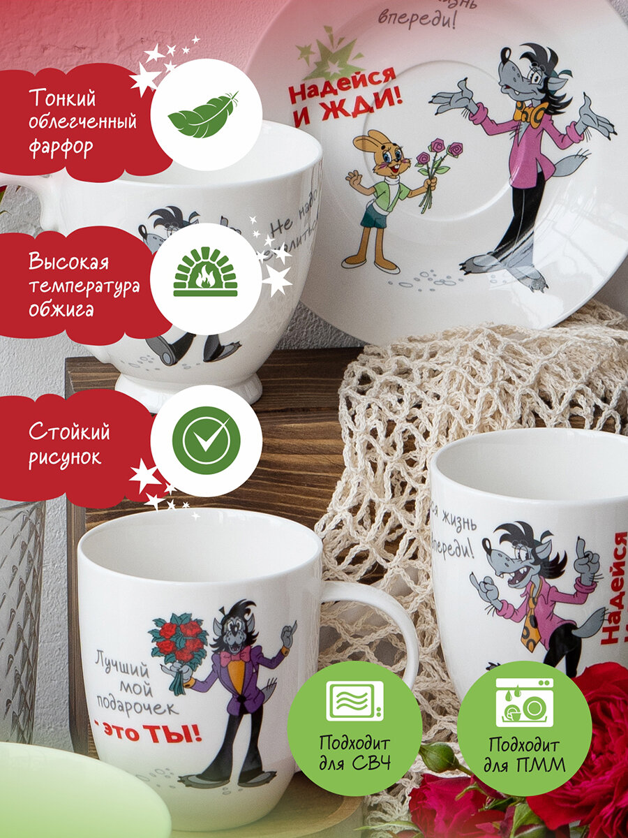 Кружка большая белая фарфор 420 мл. в подарочной упаковке. Ну, Погоди! принт "Не надо печалиться" информация: