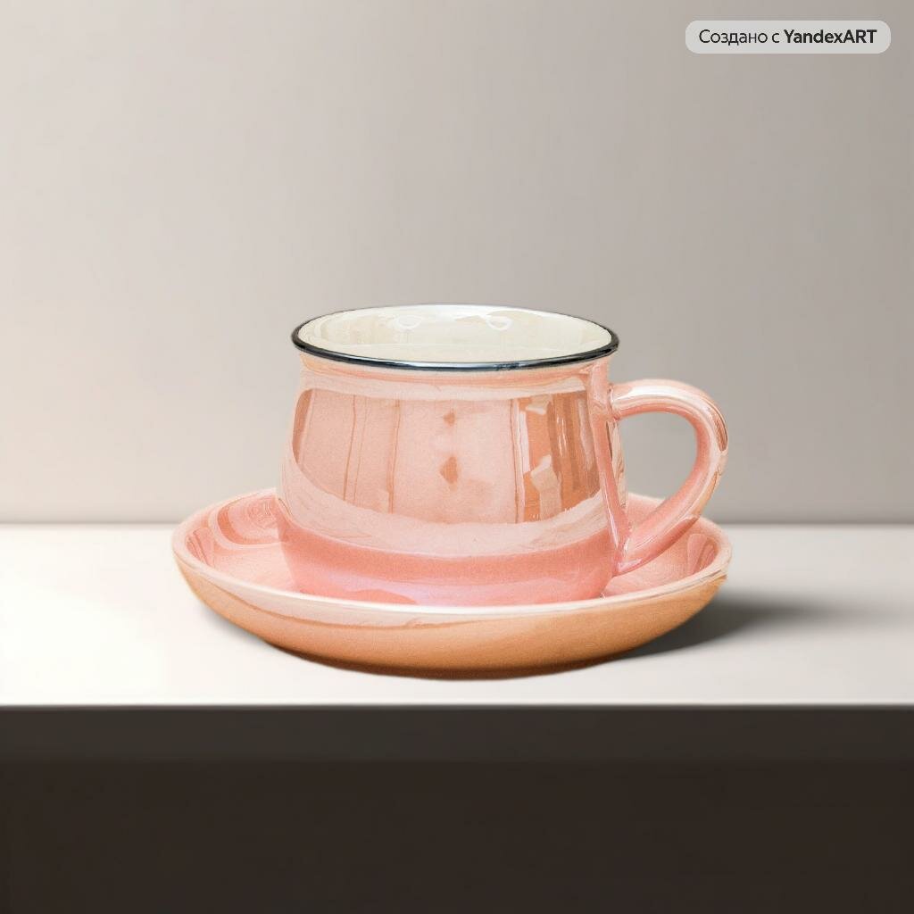 Отзывы на Кружка кофейная с блюдцем Rich 180 мл Розовая перламутровая, чайная пара, чашка для чая и кофе, женская, подарочная