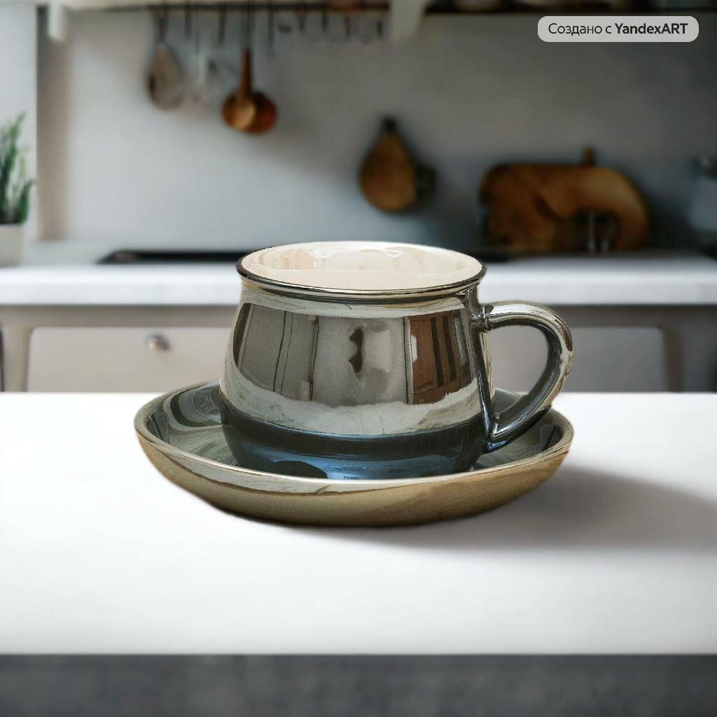Отзывы на Кружка кофейная с блюдцем Rich 180 мл Серая перламутровая, чайная пара, чашка для чая и кофе, женская, подарочная