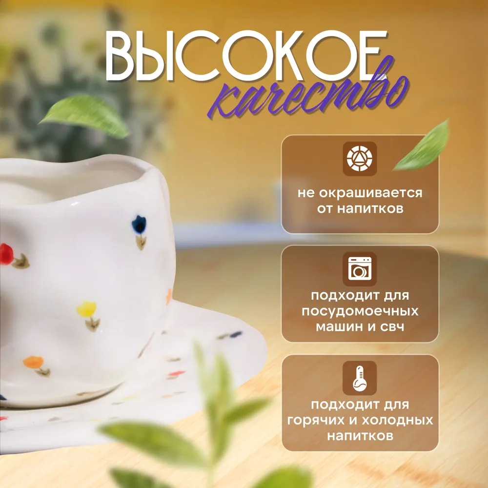 10 цен на Чашка с блюдцем "Цветы", керамическая чайная пара, кружка 300 мл