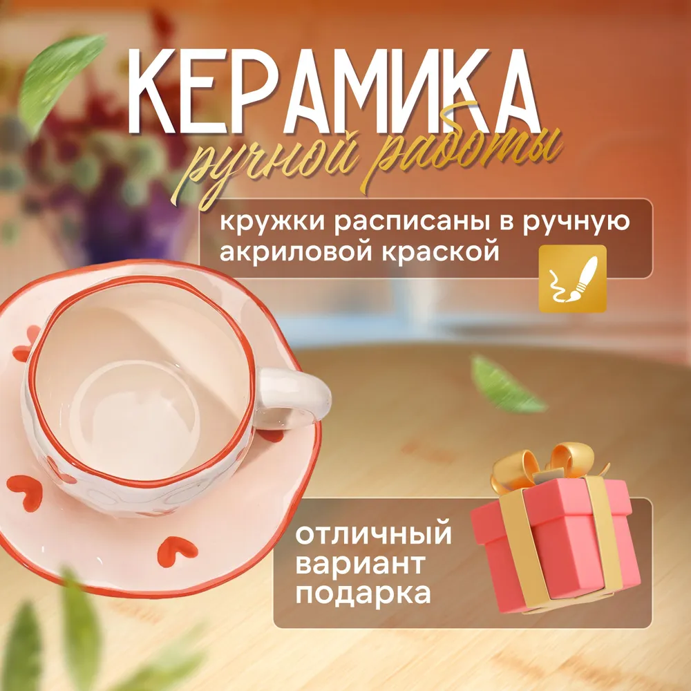 10 цен на Чашка с блюдцем "Сердечки розовые", керамическая чайная пара, 300 мл