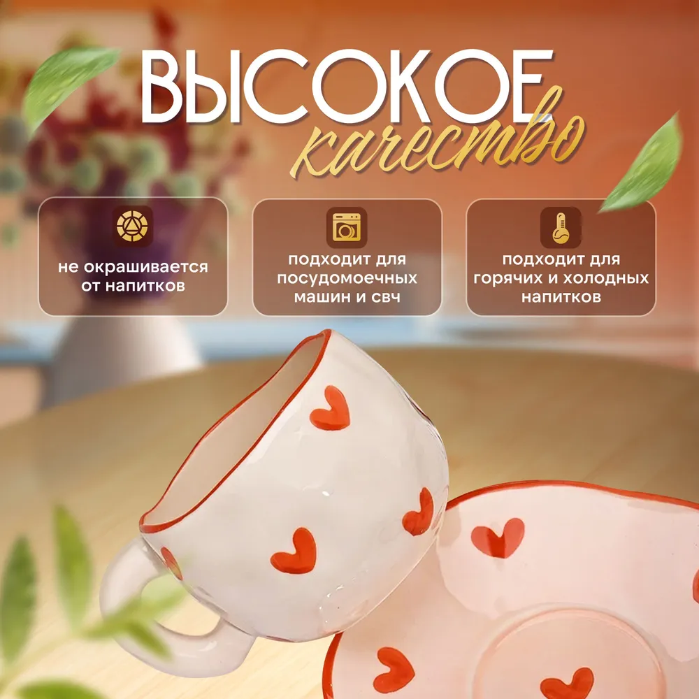 Чашка с блюдцем "Сердечки розовые", керамическая чайная пара, 300 мл информация: