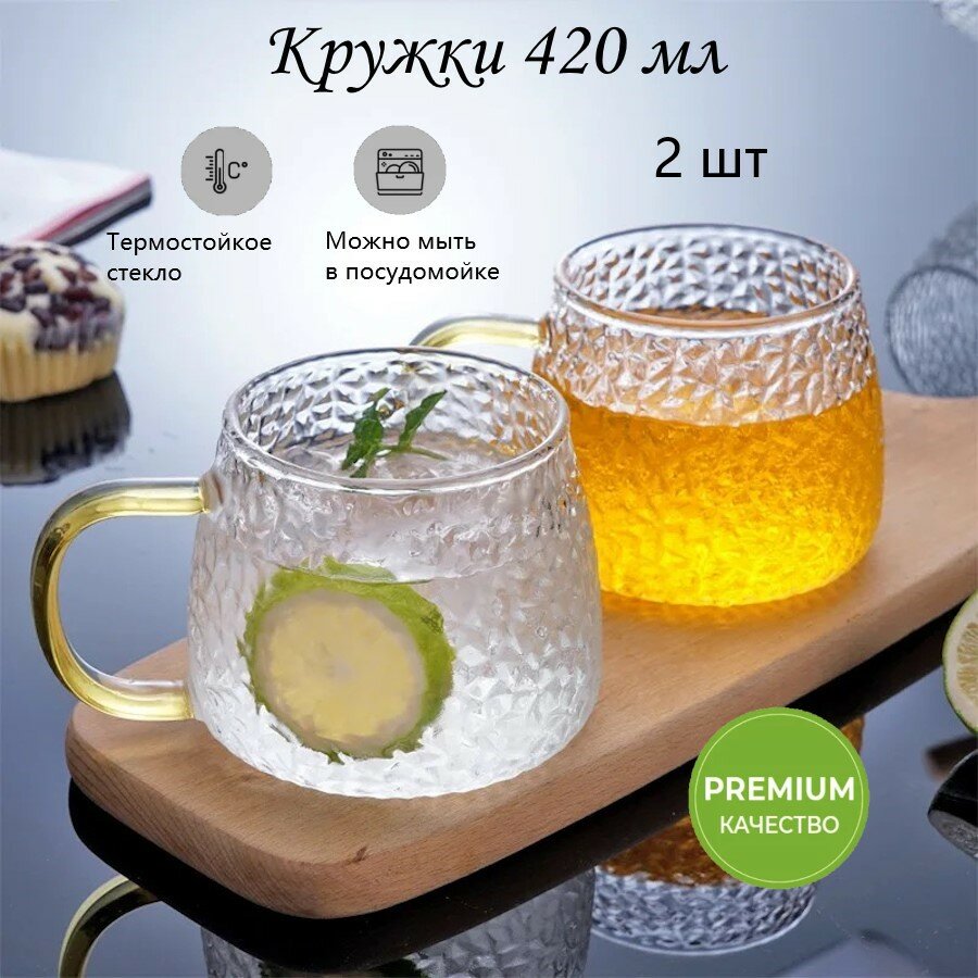Чайная пара стеклянных кружек, набор кружек для чая и кофе, чашки большие 420мл информация: