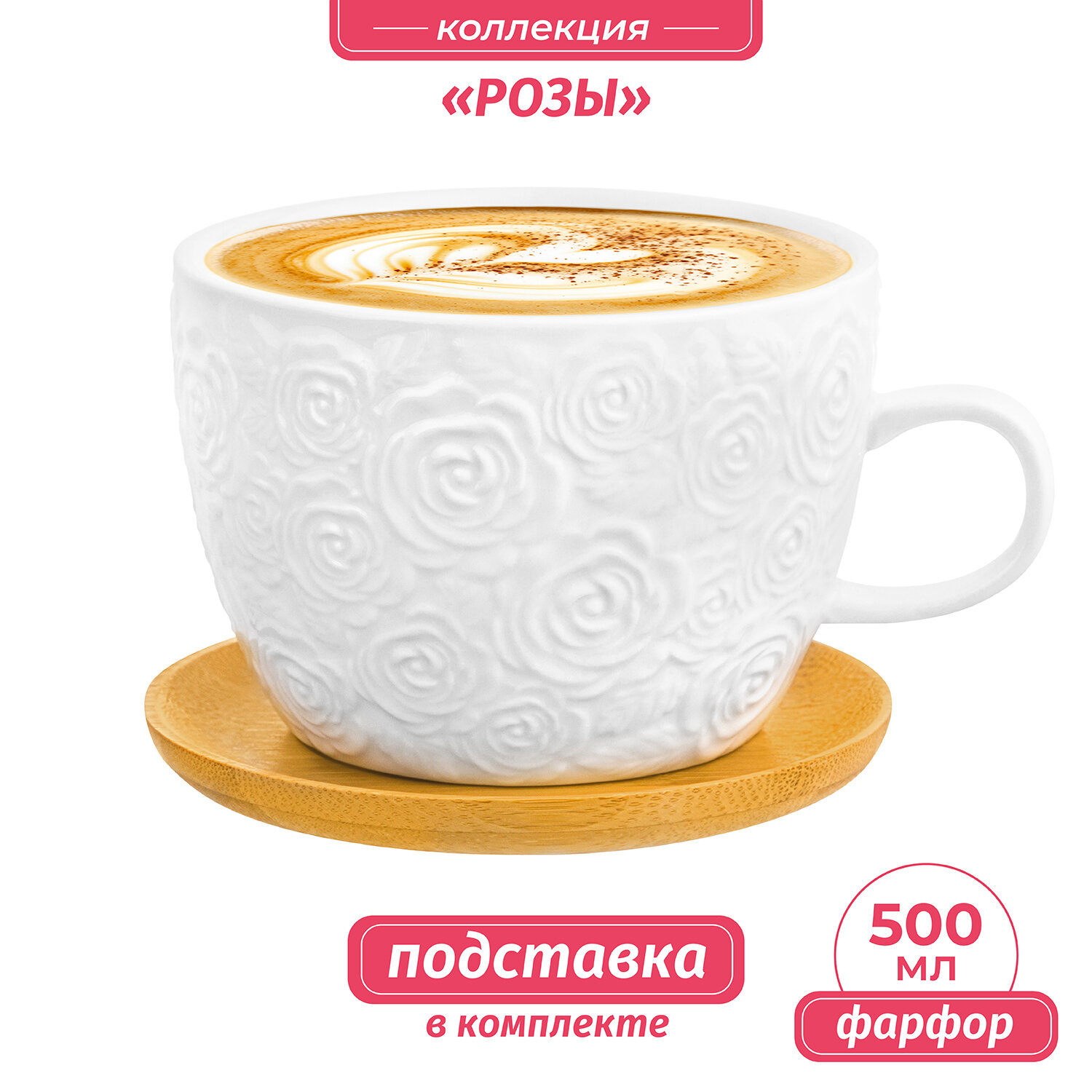 Чашка, кружка для капучино и кофе латте 500 мл Elan Gallery Розы на деревянной подставке информация: